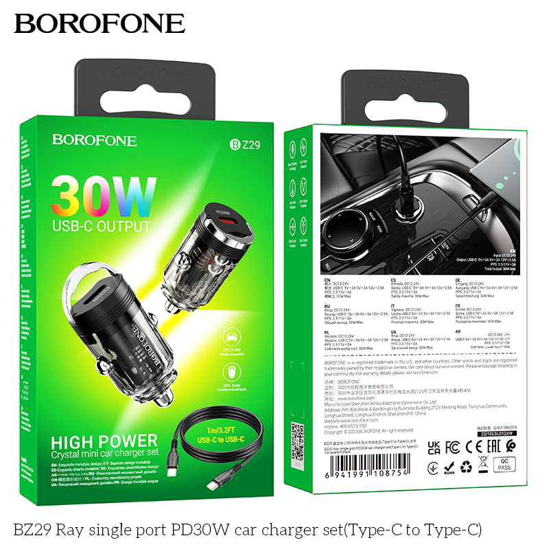 Bộ sạc xe hơi PD30W một cổng BZ29 Ray (Type-C đến Type-C)