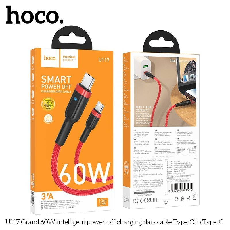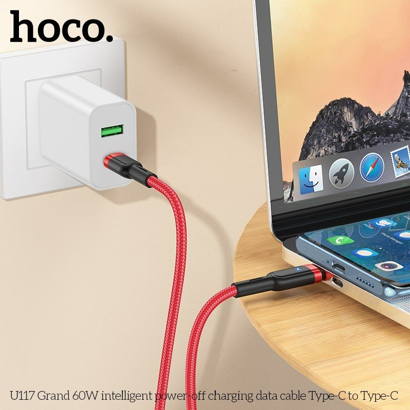 Cáp dữ liệu sạc tự ngắt thông minh U117 Grand 60W Type-C to Type-C