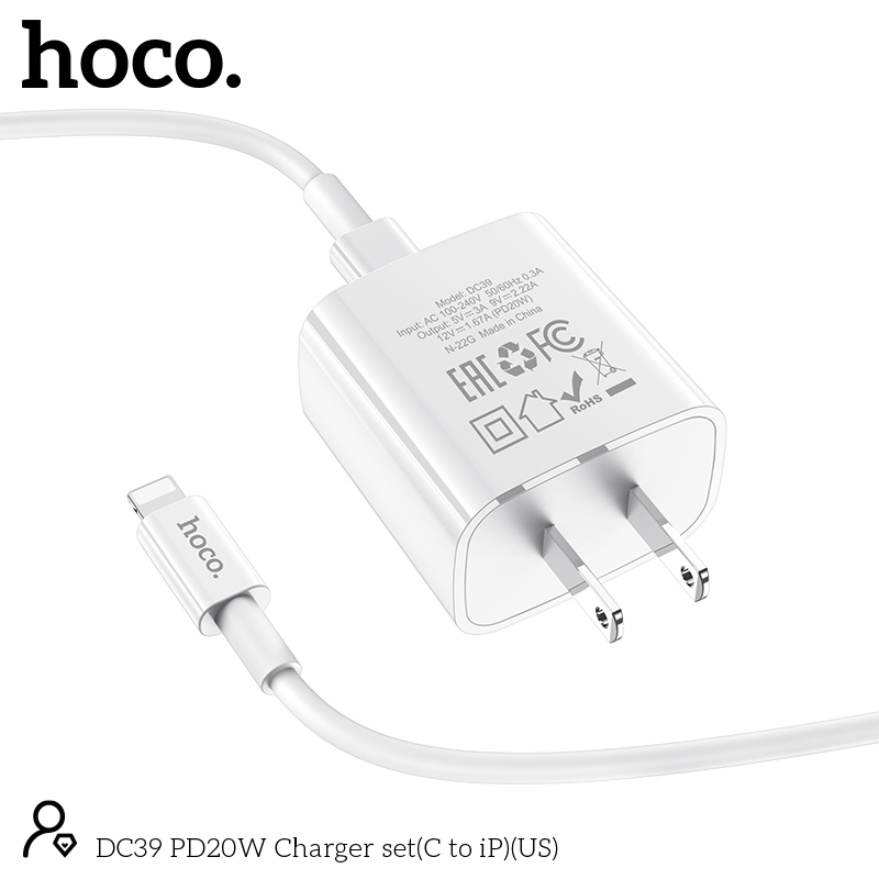 Bộ cốc cáp sạc nhanh Hoco DC39 lightning