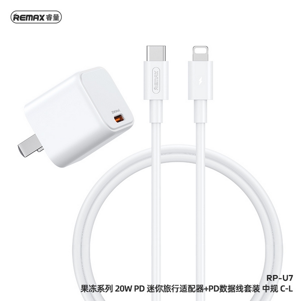 Bộ sạc nhanh REMAX Set RP-U7 C-L CN 20W PD (Type C To Lightning)