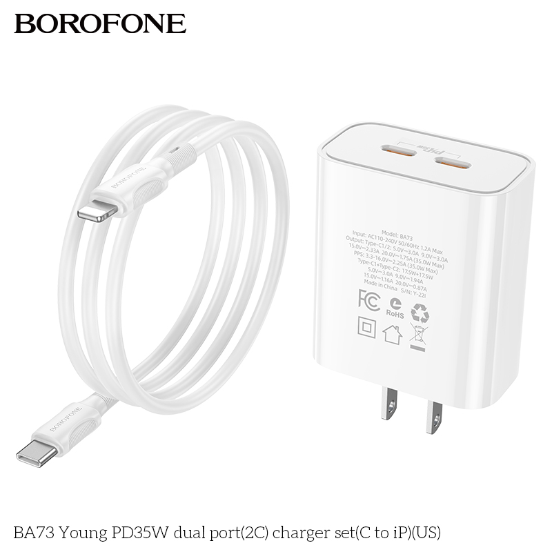 Bộ sạc BA73 Young PD35W cổng kép(2C)(C sang iP)(US)