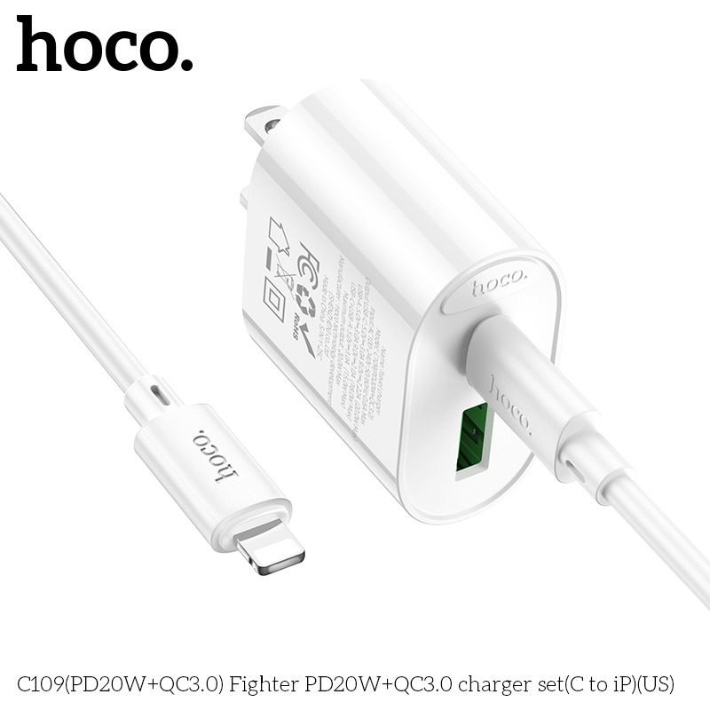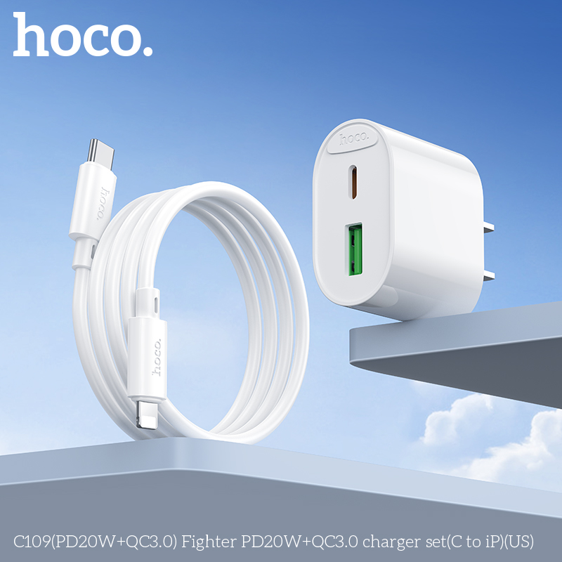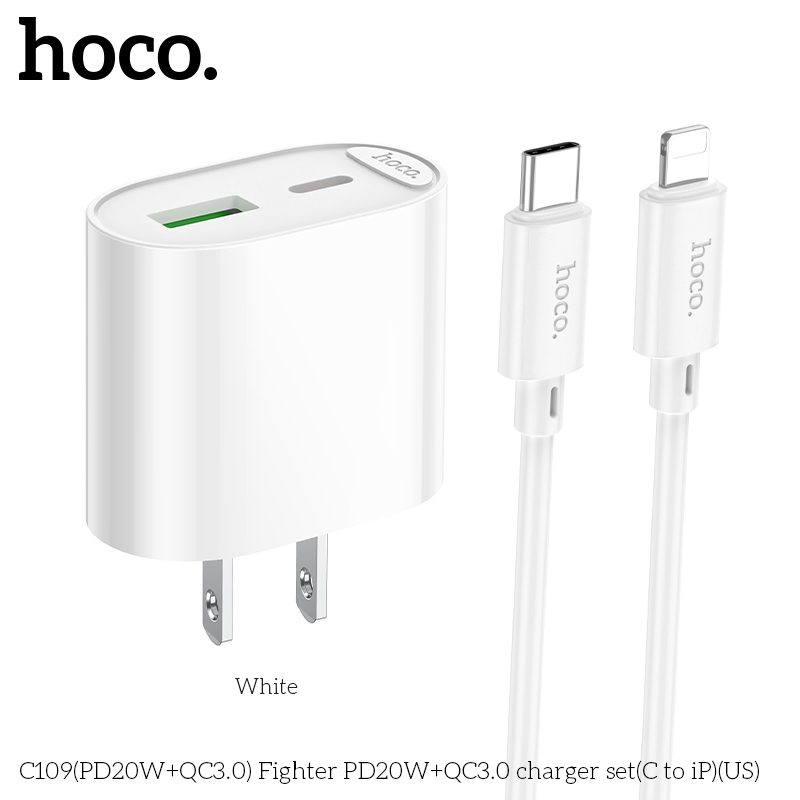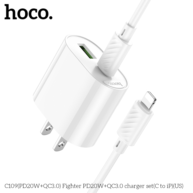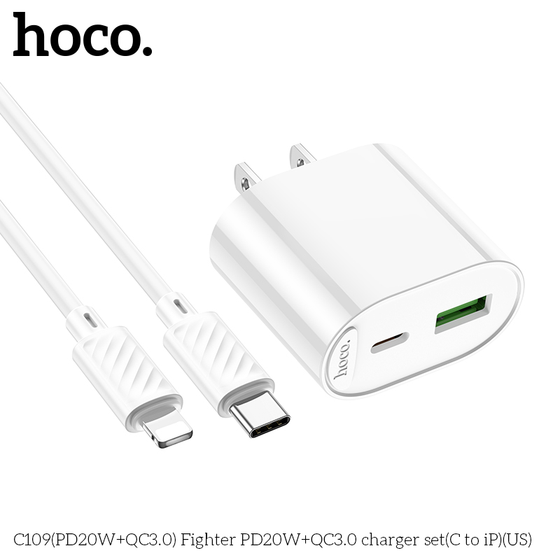 Bộ sạc C109(PD20W+QC3.0) Fighter PD20W+QC3.0 (C đến iP)(US)