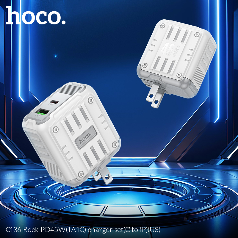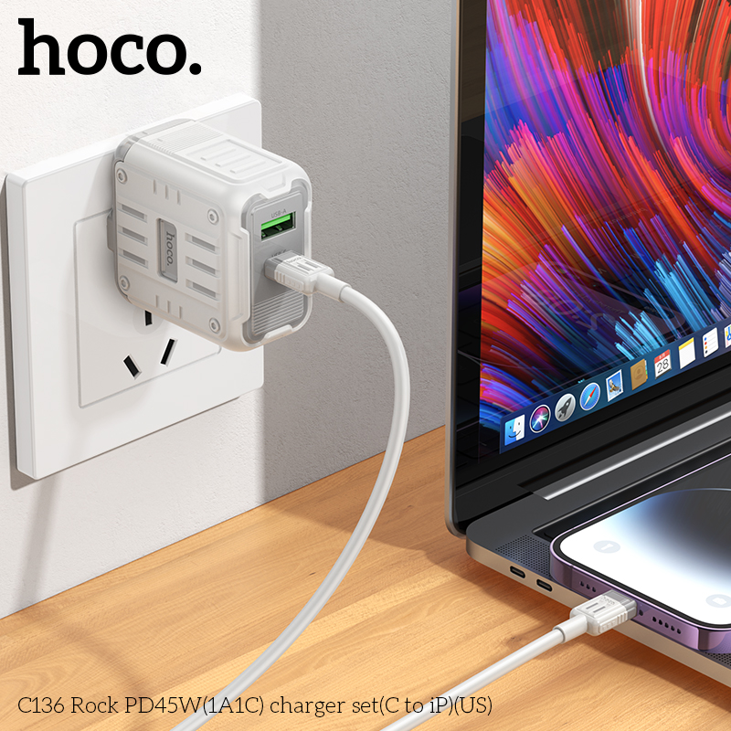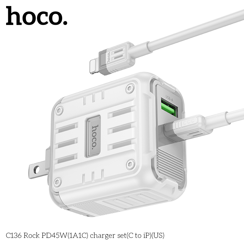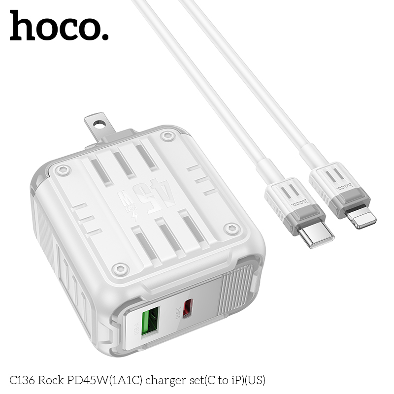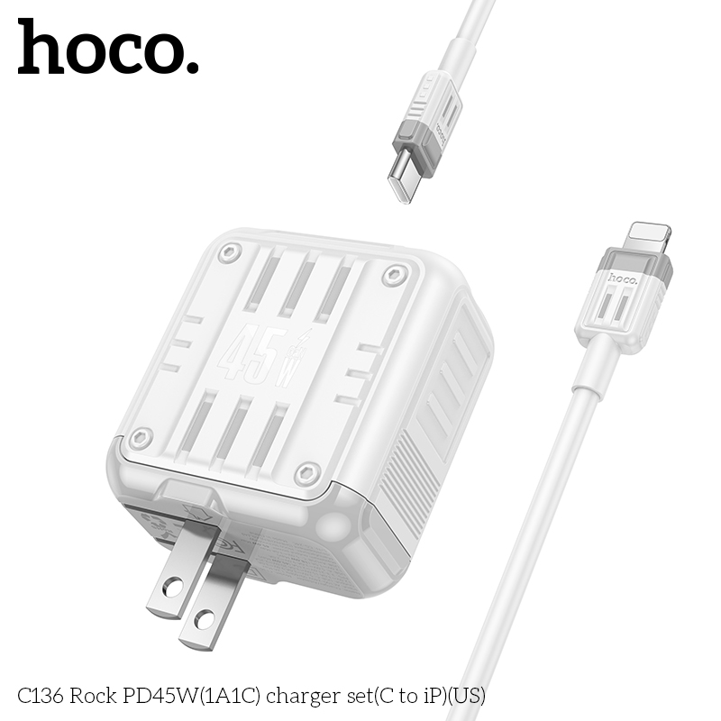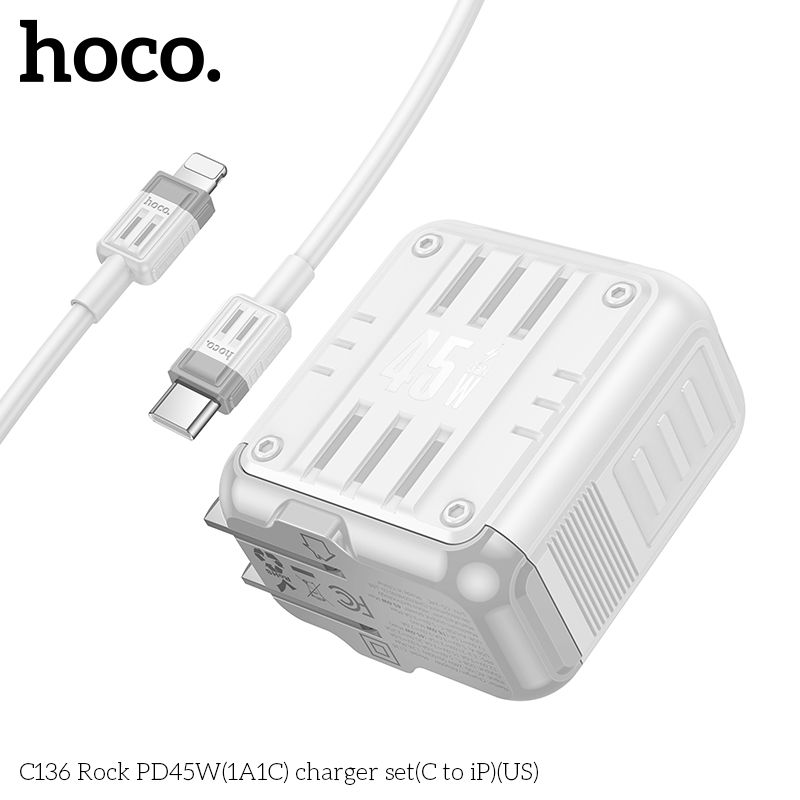 Bộ sạc C136 Rock PD45W(1A1C)(C to iP)(US)