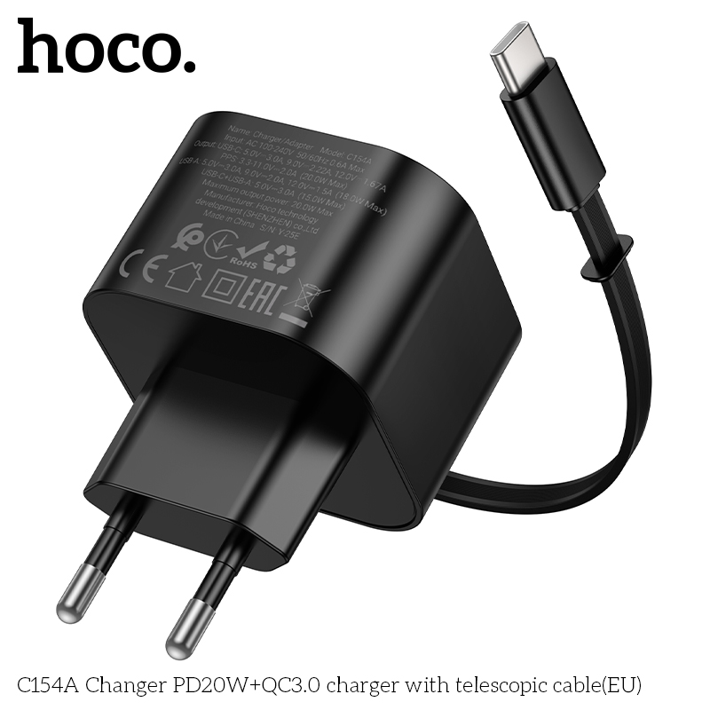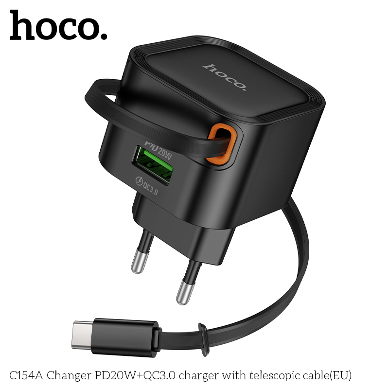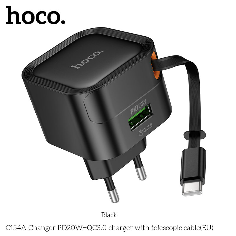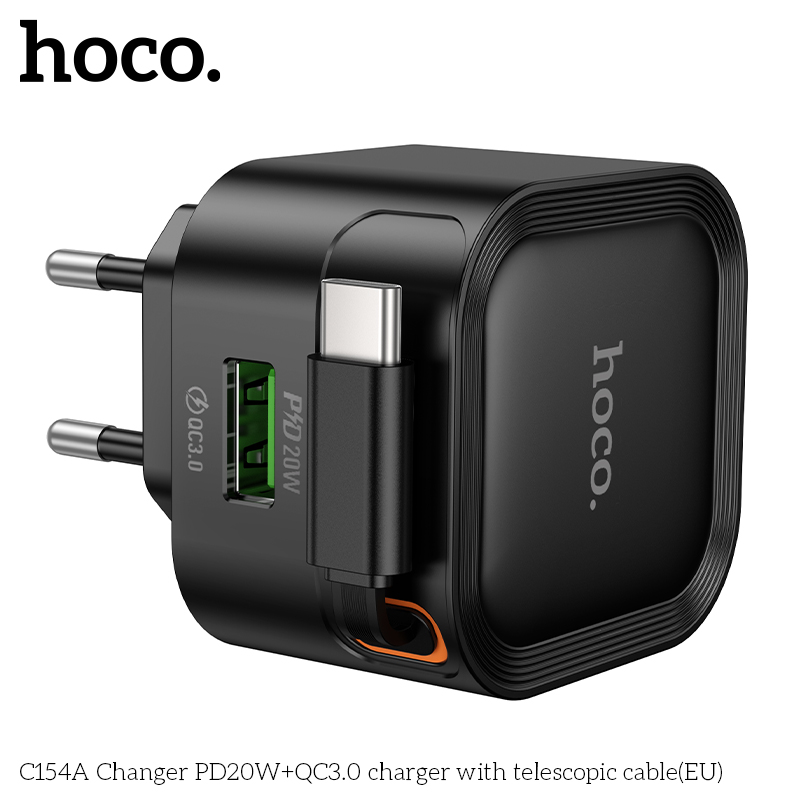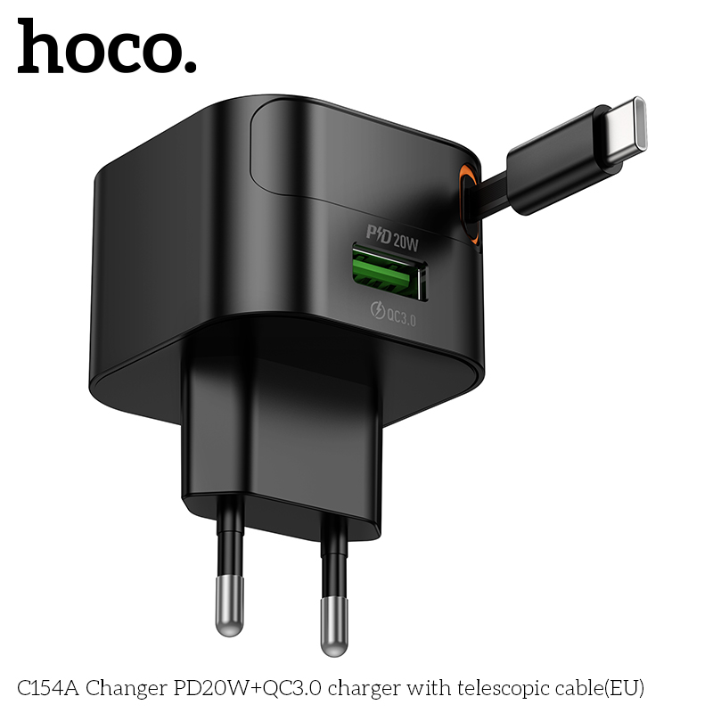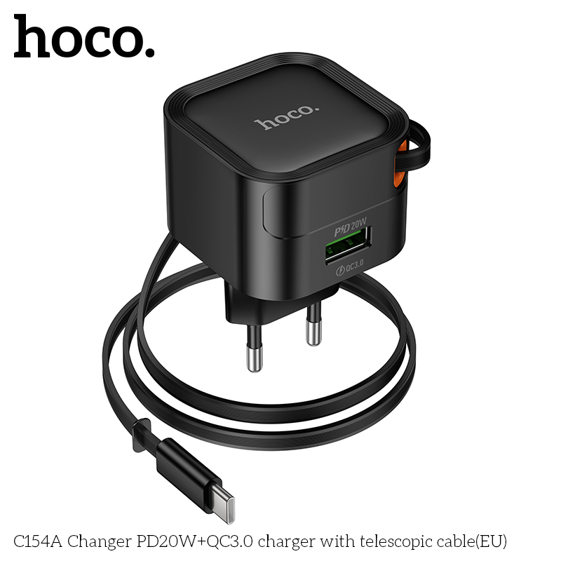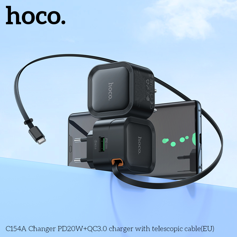 Bộ sạc C154A Changer PD20W+QC3.0 kèm cáp thu gọn Type-C (EU)