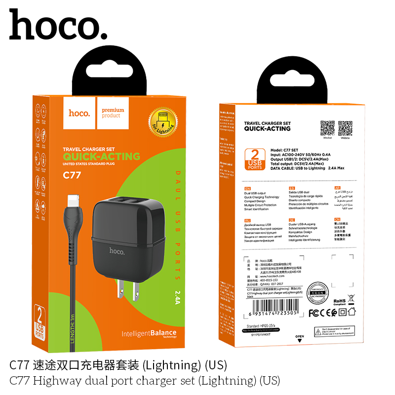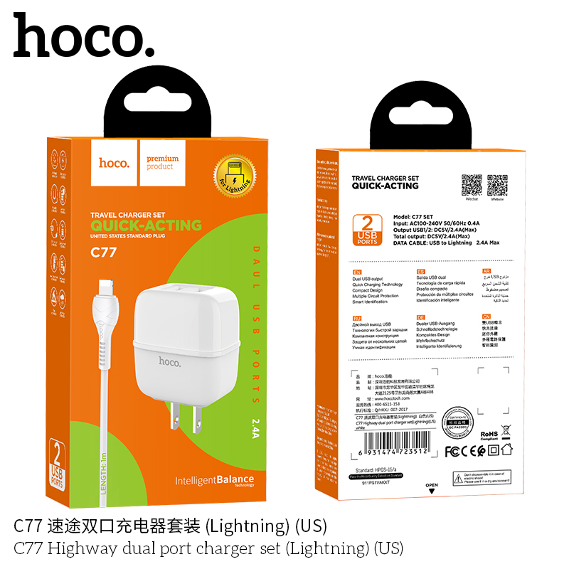Bộ sạc cổng kép Highway C77(iP)(US)