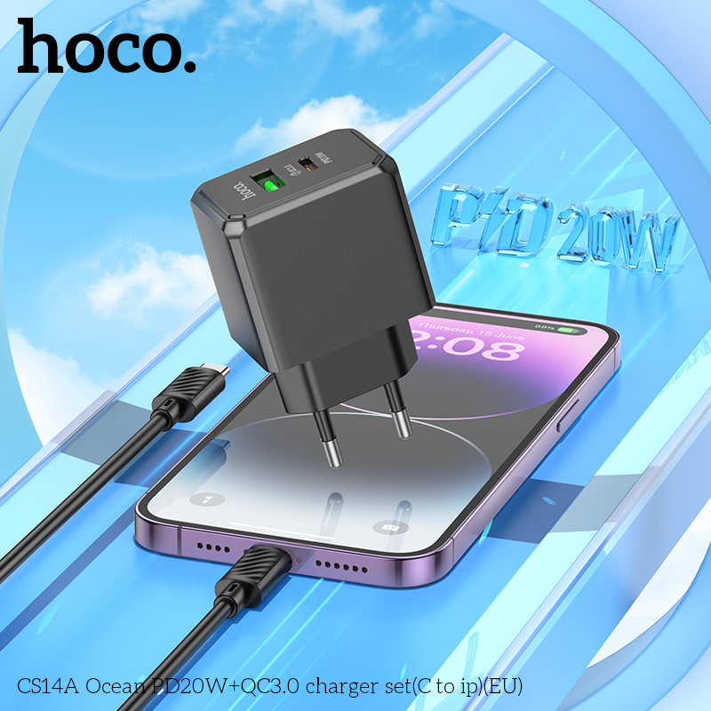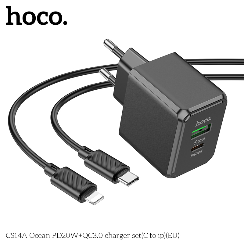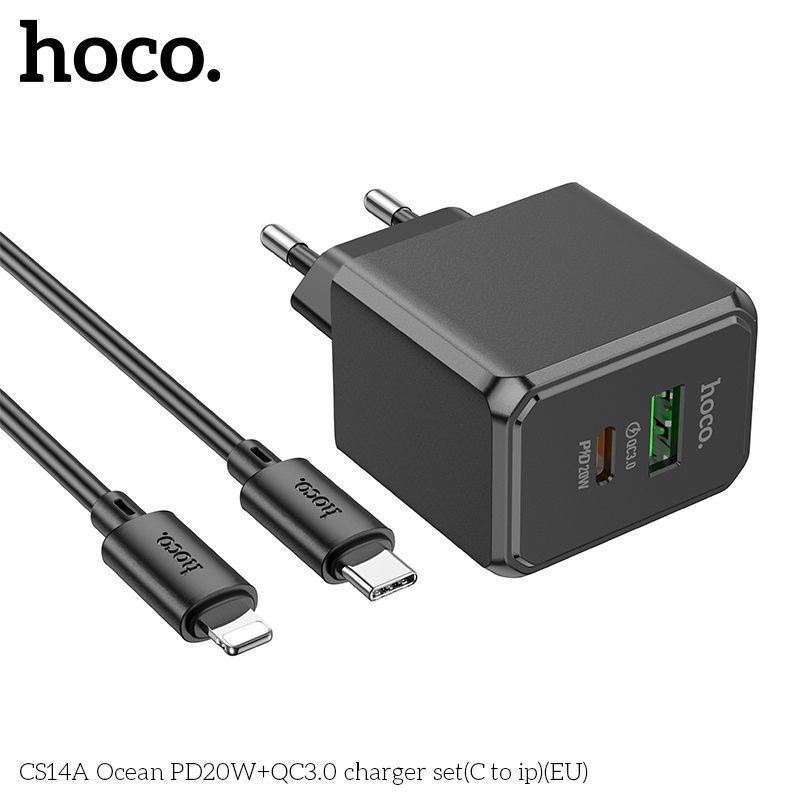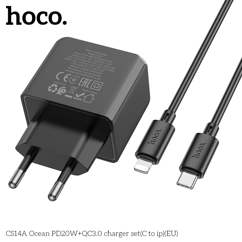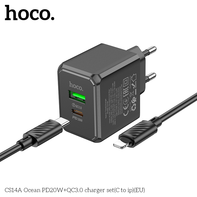 Bộ sạc CS14A Ocean PD20W+QC3.0(C to iP)(EU)