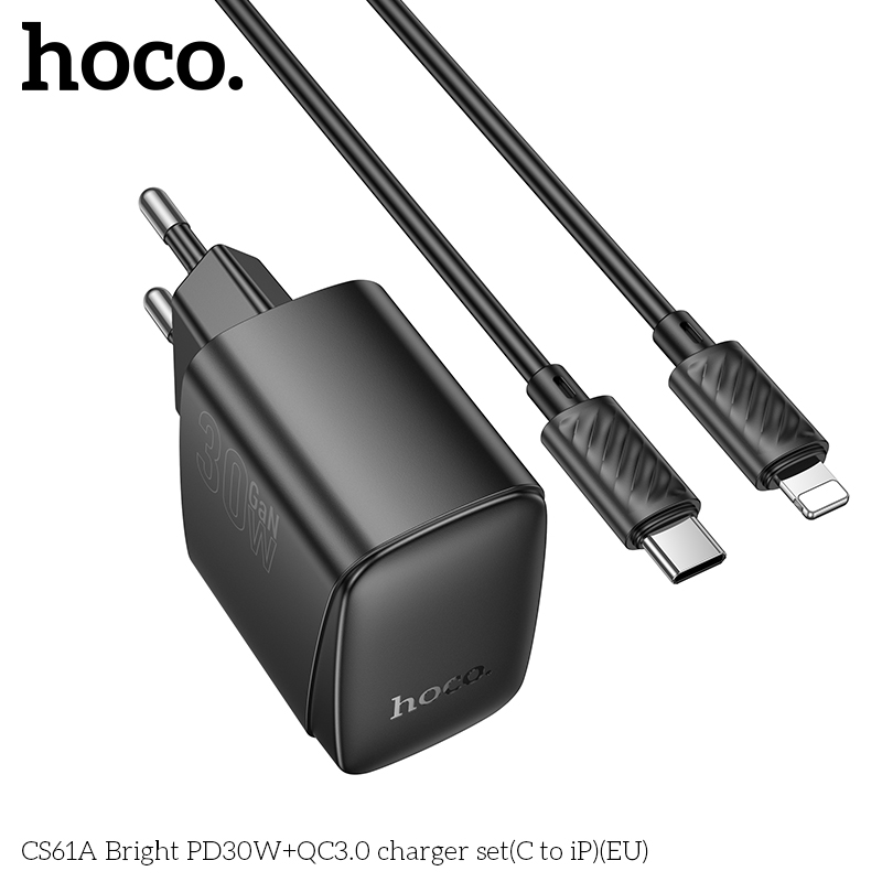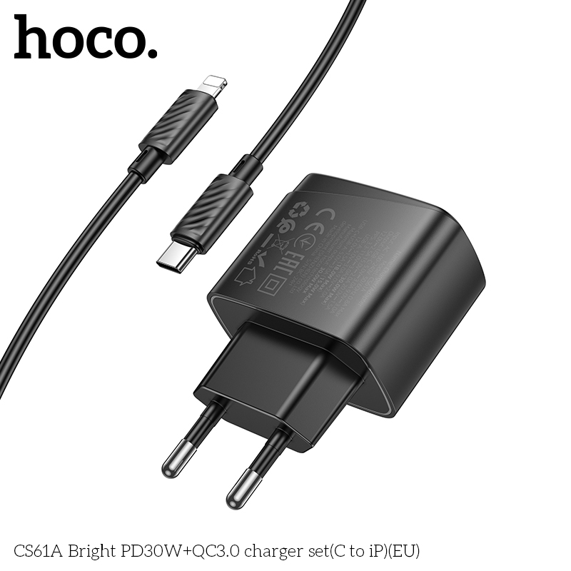 Bộ sạc CS61A Bright PD30W+QC3.0 (C đến iP) (EU)
