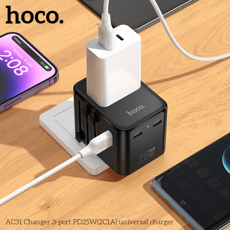 Bộ sạc đa năng AC31 Changer 3 cổng PD25W(2C1A)