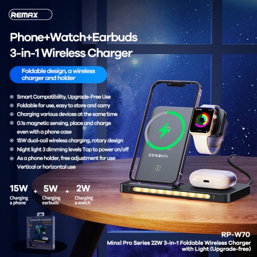 Bộ sạc không dây REMAX 22W 3IN1 RP-W70