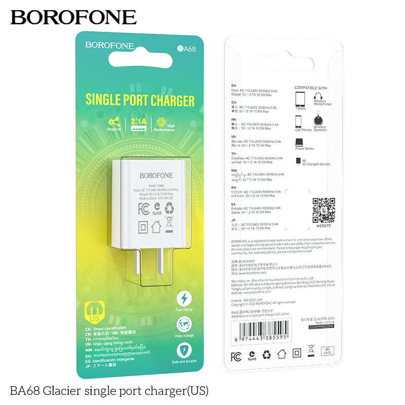 Bộ sạc một cổng BA68 Glacier(iP)(US)