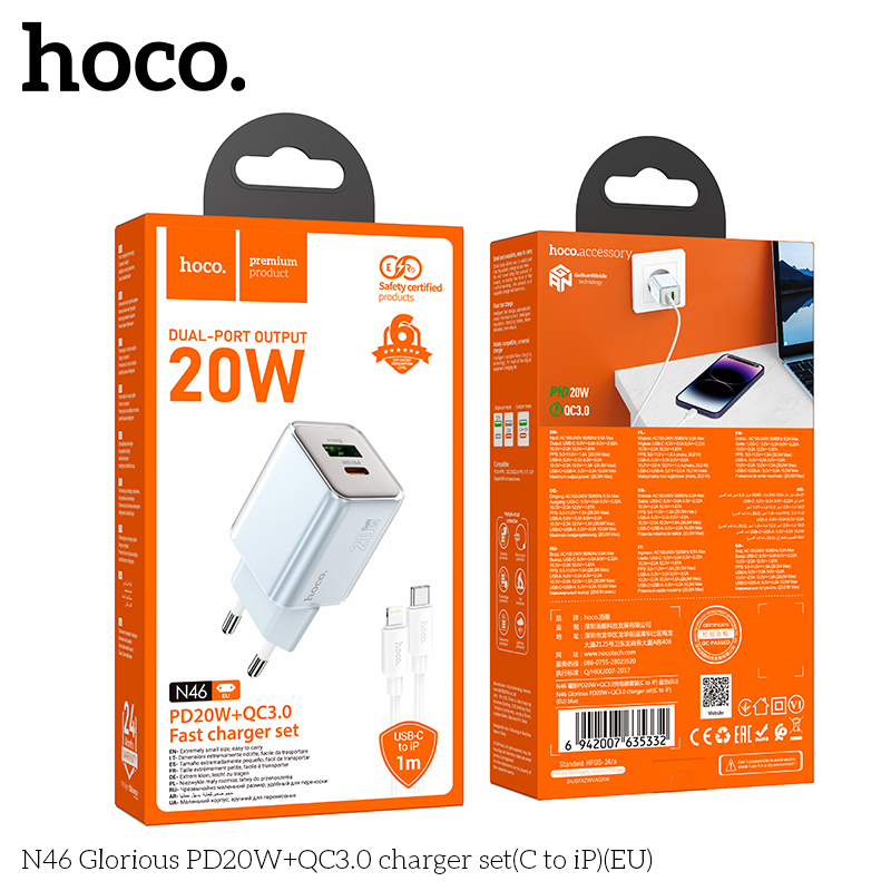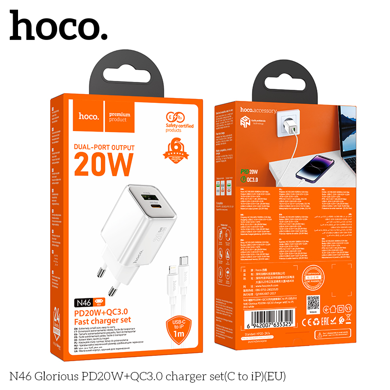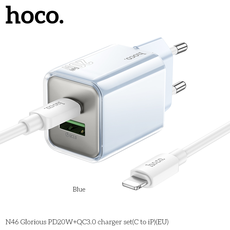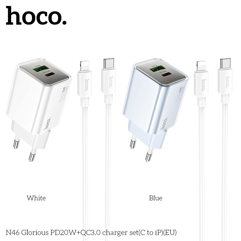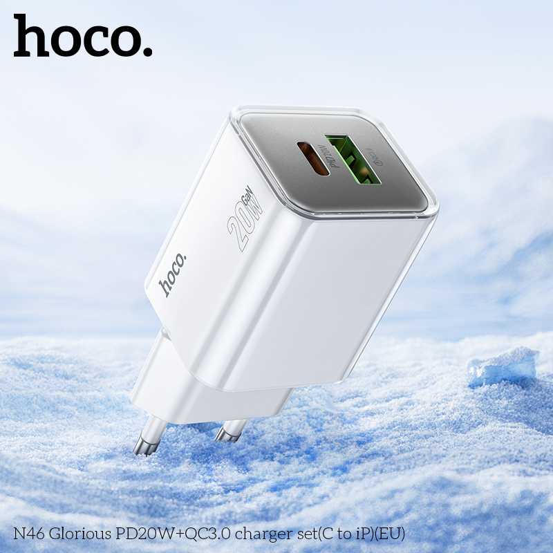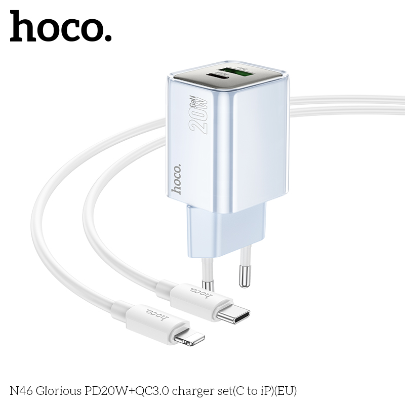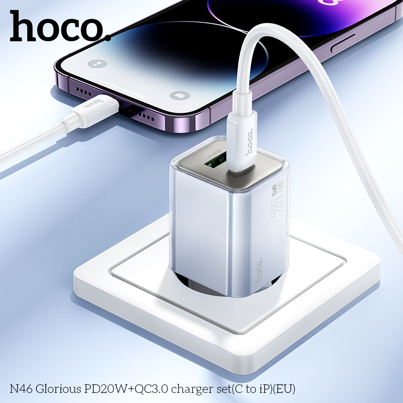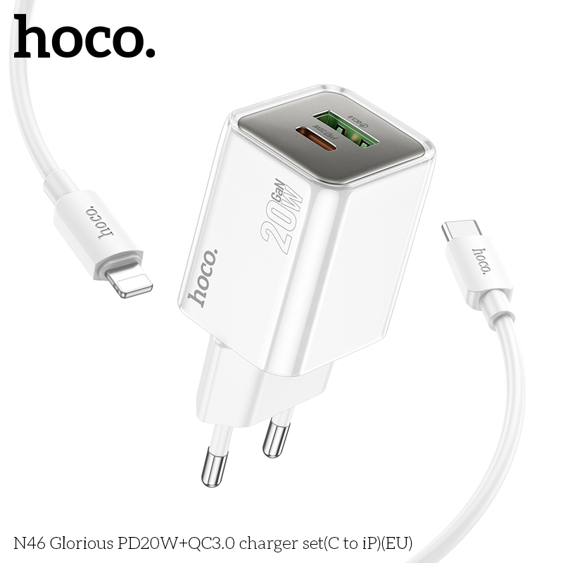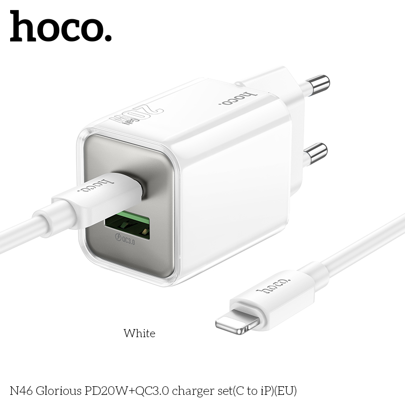 Bộ sạc N46 Glorious PD20W+QC3.0 (C đến iP) (EU)