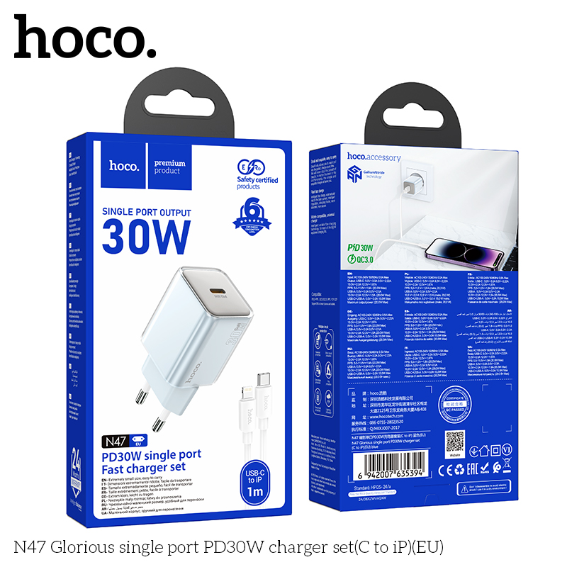 Bộ sạc N47 Glorious một cổng PD30W (C đến iP) (EU)