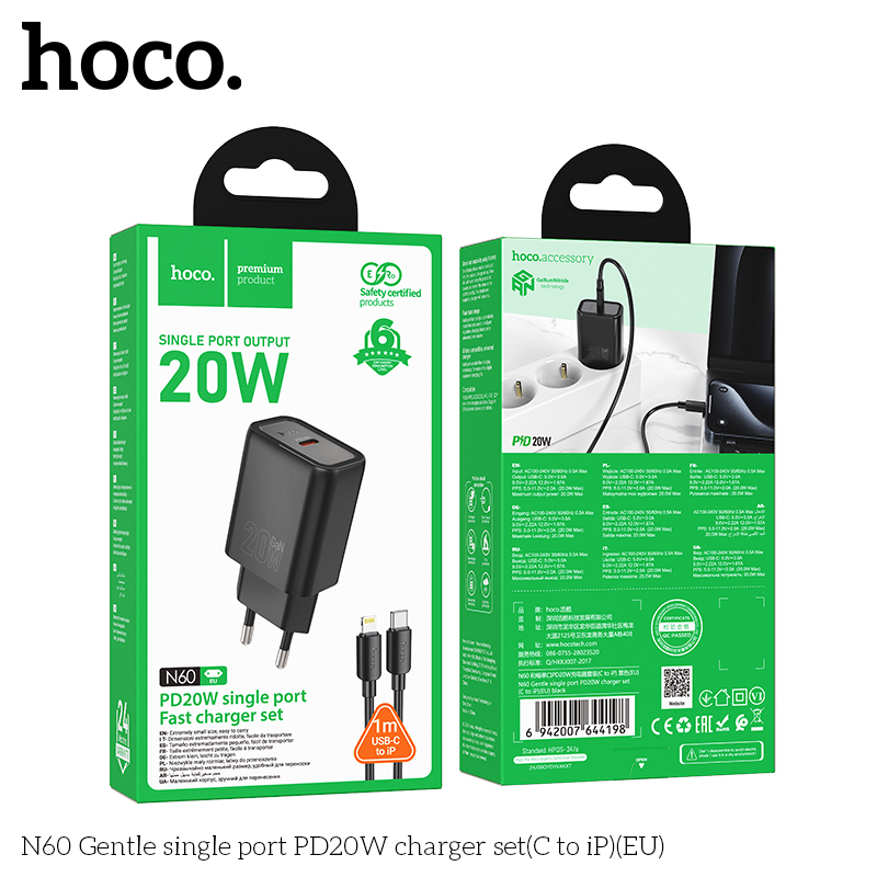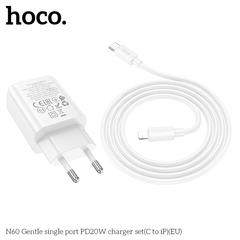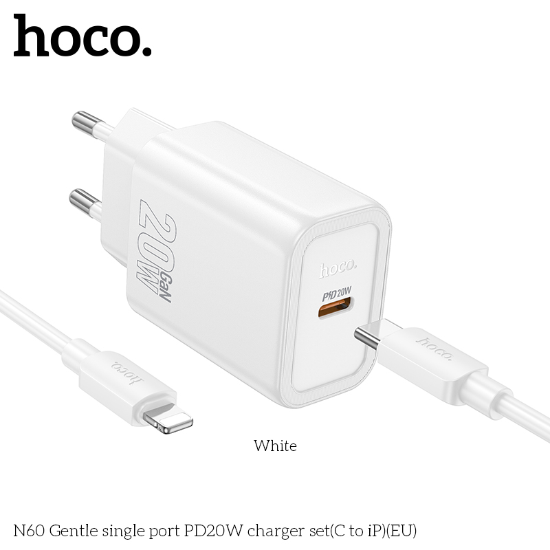 Bộ sạc N60 Gentle một cổng PD20W (C đến iP) (EU)