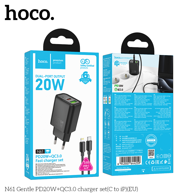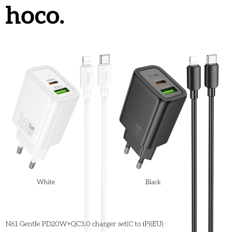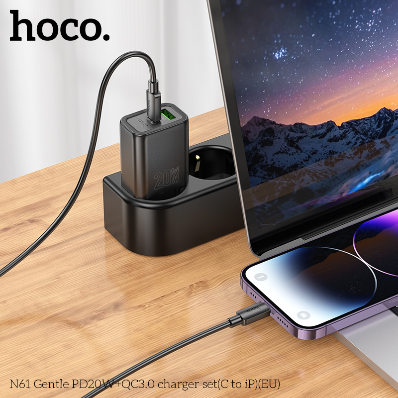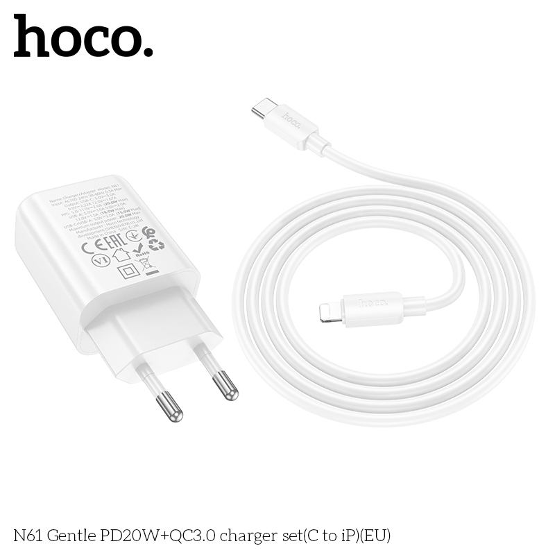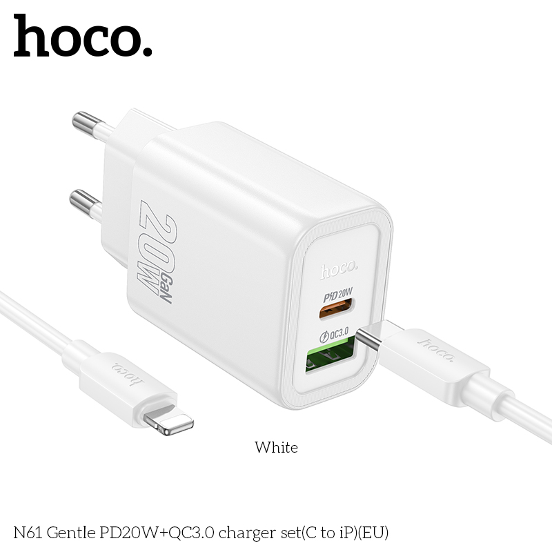 Bộ sạc N61 Gentle PD20W+QC3.0 (C đến iP) (EU)