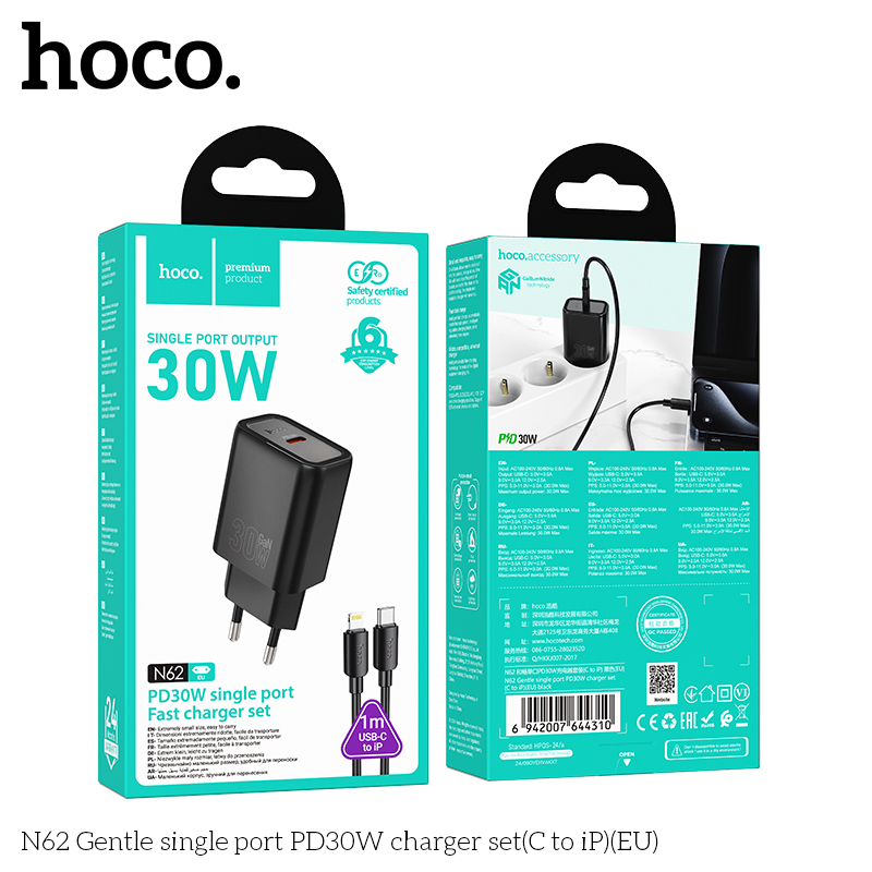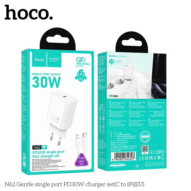 Bộ sạc N62 Gentle một cổng PD30W (C đến iP) (EU)