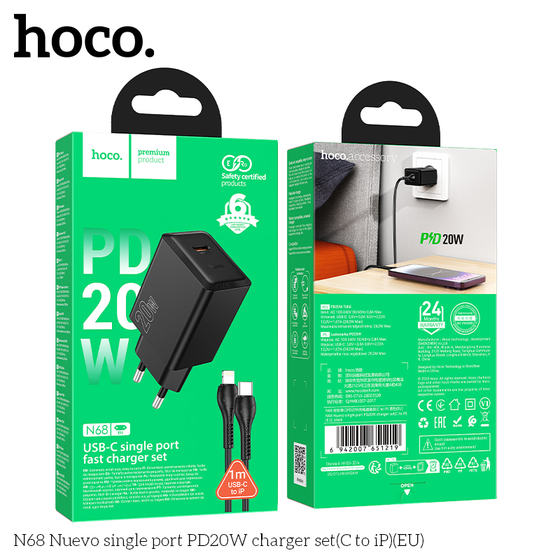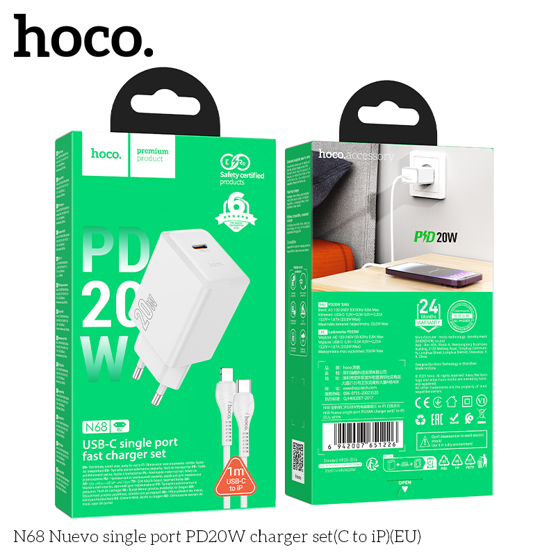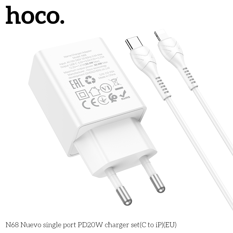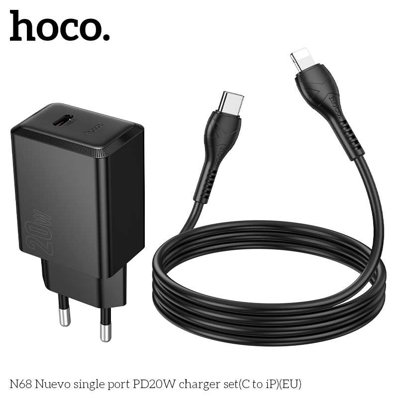 Bộ sạc N68 Nuevo cổng đơn PD20W (C đến iP) (EU)