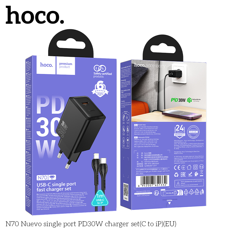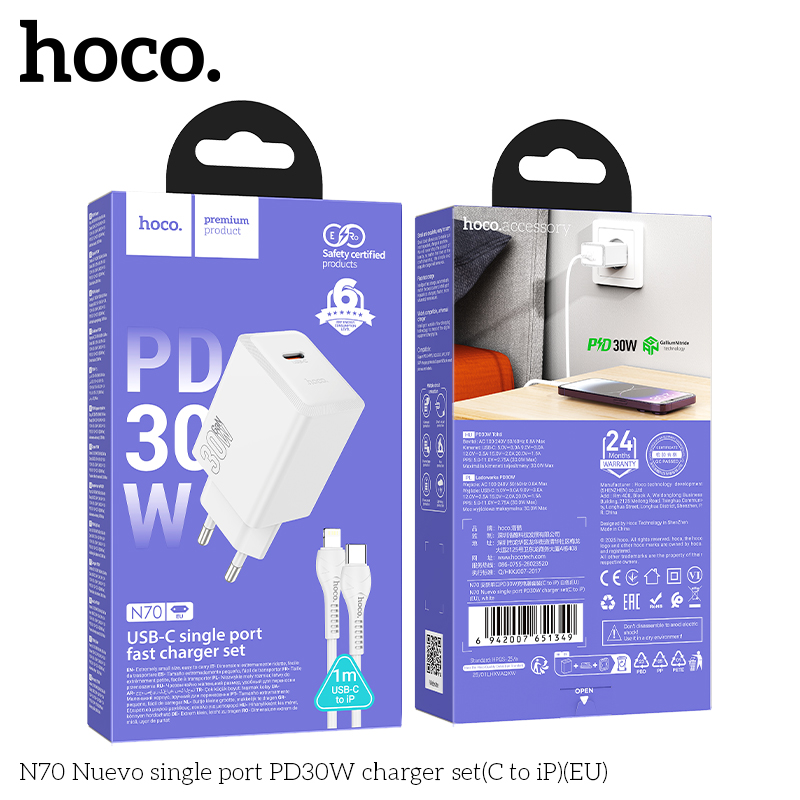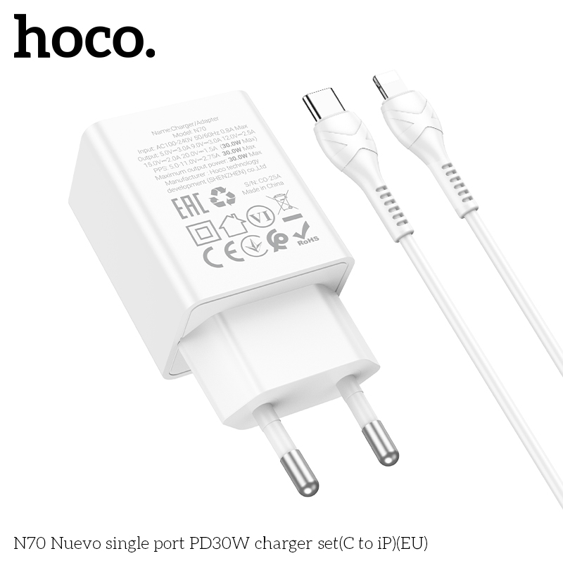 Bộ sạc N70 Nuevo cổng đơn PD30W (C đến iP) (EU)