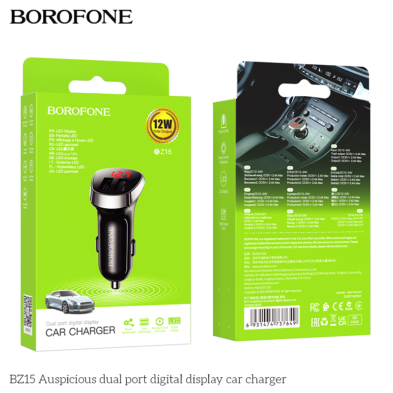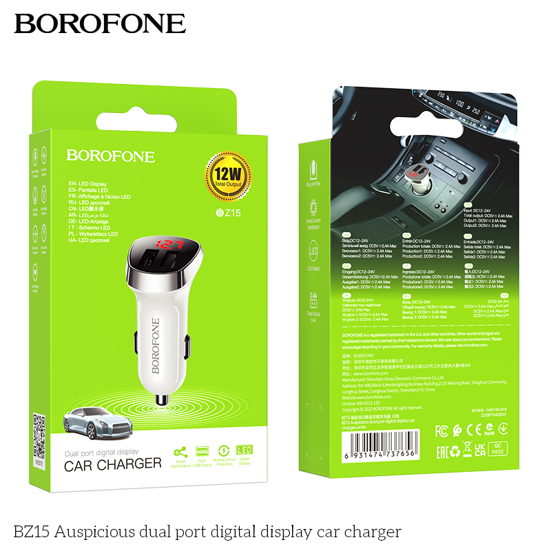 Bộ sạc ô tô màn hình kỹ thuật số cổng kép tốt lành BZ15