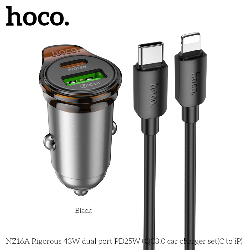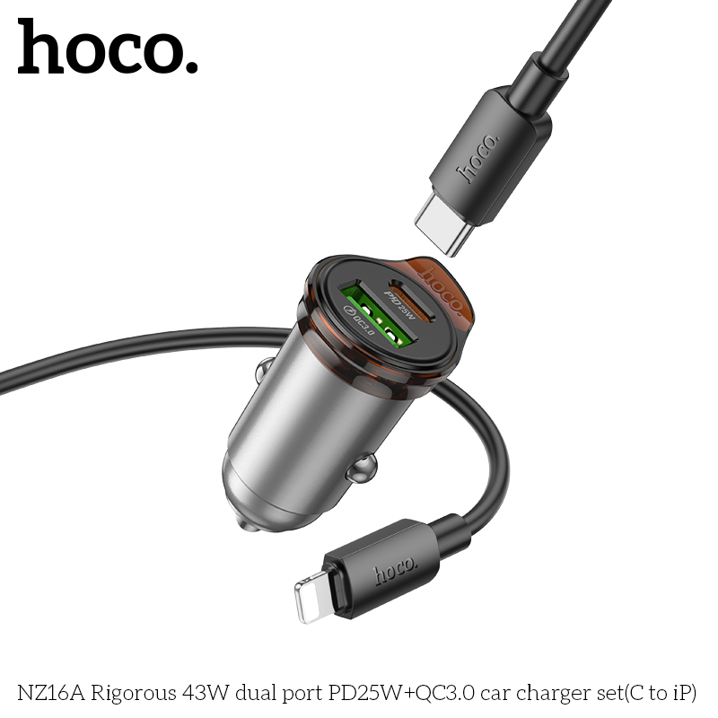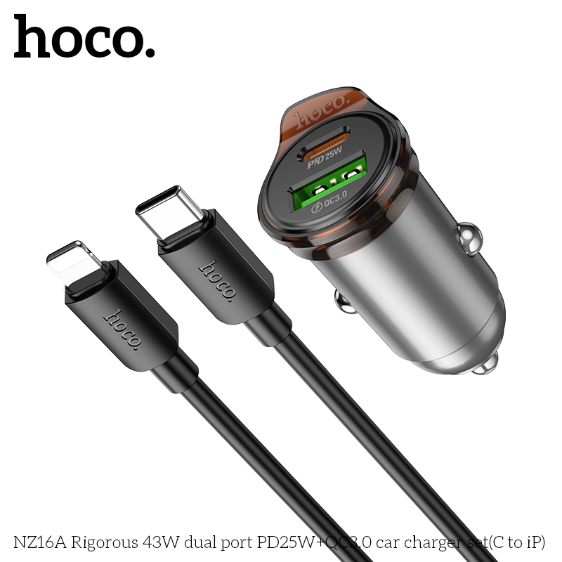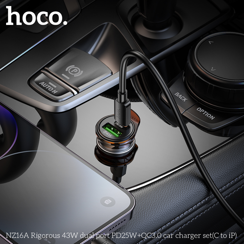 Bộ sạc ô tô NZ16A Rigorous 43W cổng kép PD25W+QC3.0 (C đến iP)