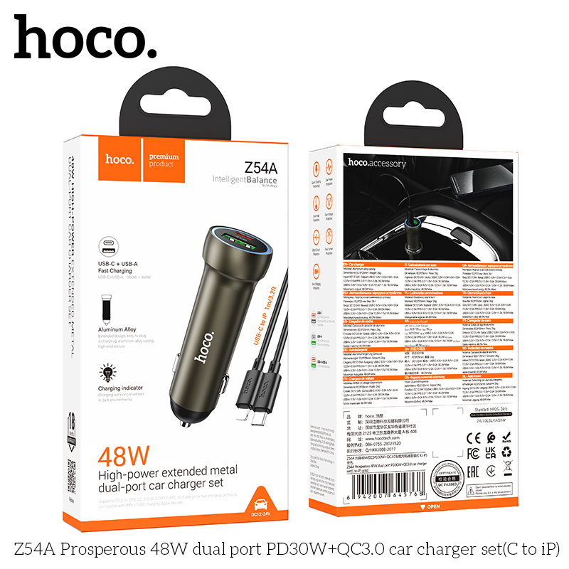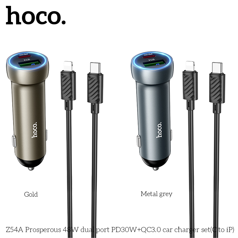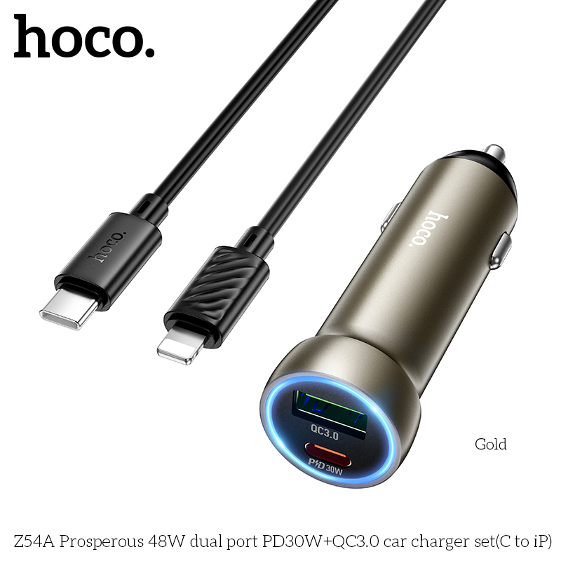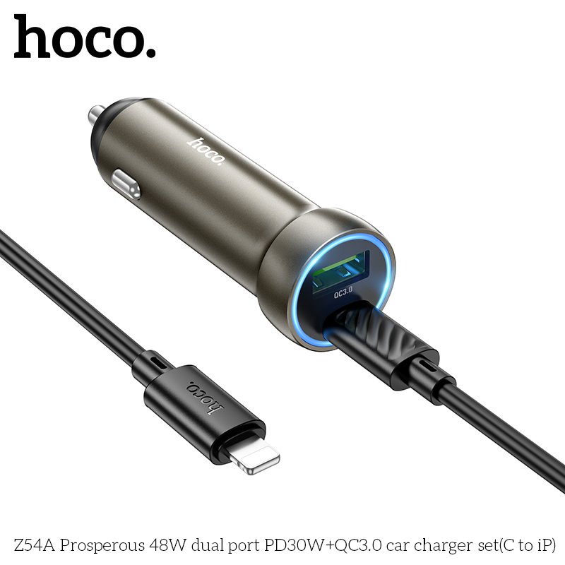 Bộ sạc ô tô Z54A Prosperous 48W cổng kép PD30W+QC3.0 (C đến iP)