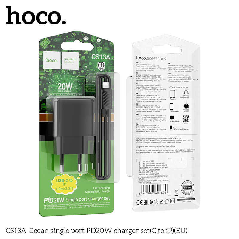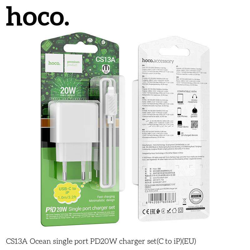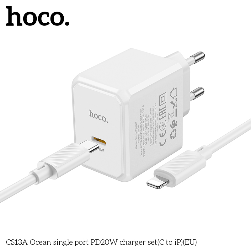 Bộ sạc PD20W 1 cổng CS13A Ocean (C to iP)(EU)