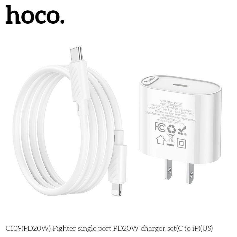 Bộ sạc PD20W một cổng C109 (PD20W) (C đến iP) (US)