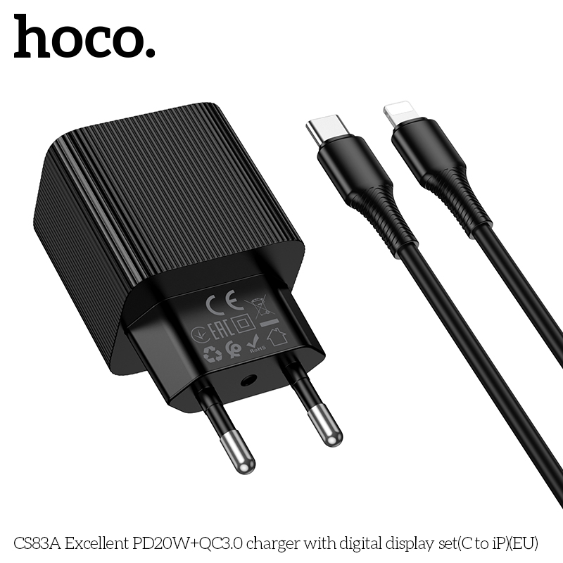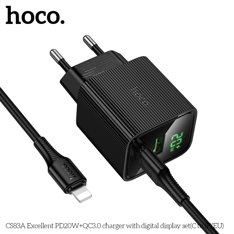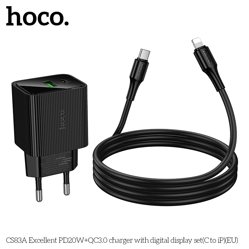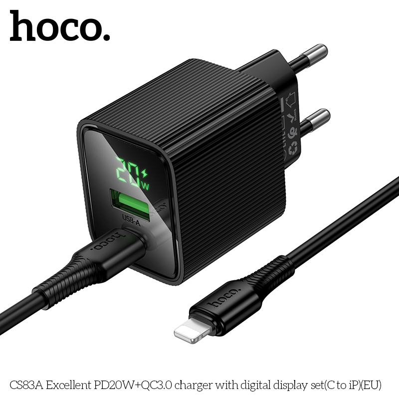 Bộ sạc PD20W+QC3.0 tuyệt vời CS83A có màn hình hiển thị kỹ thuật số (C đến iP) (EU)