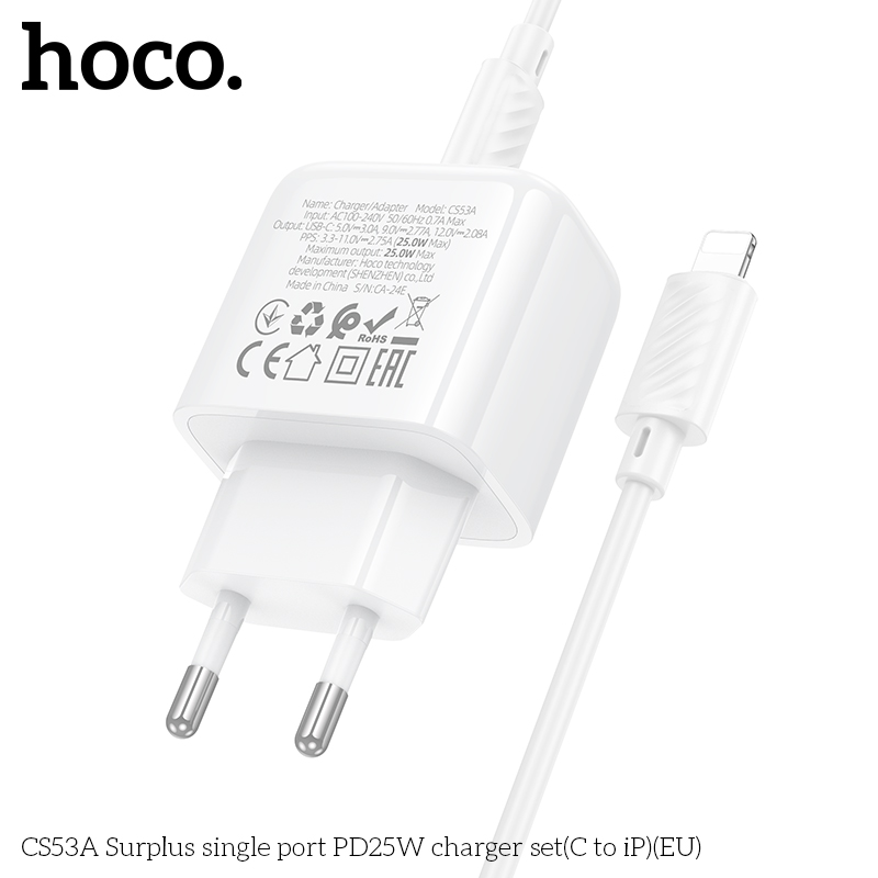 Bộ sạc PD25W một cổng đơn CS53A(C sang iP)(EU)