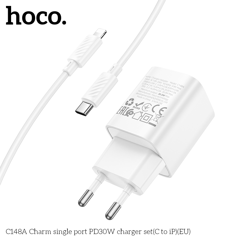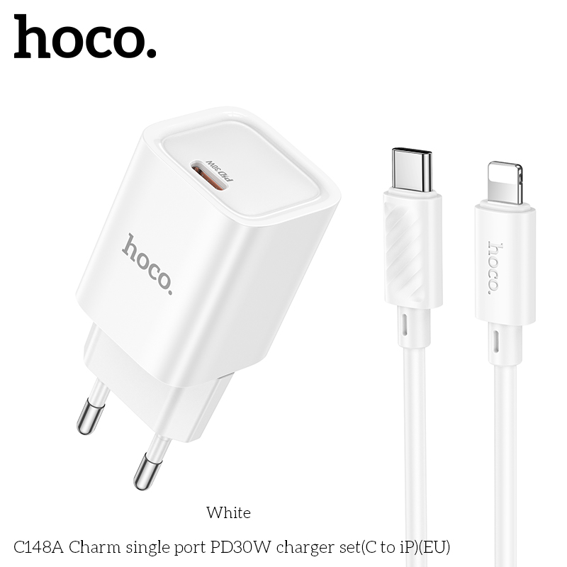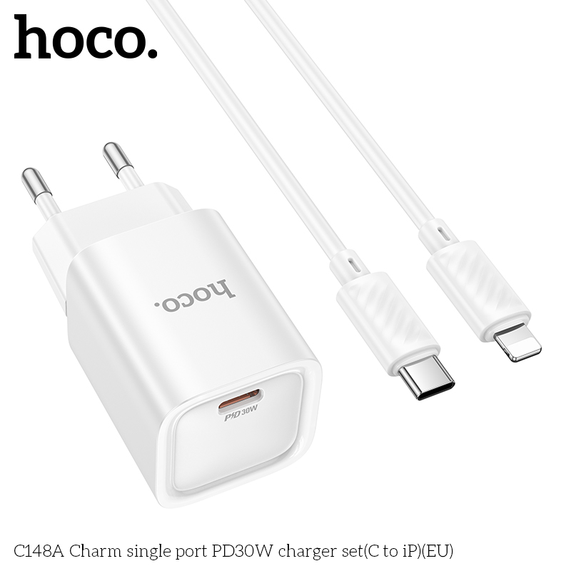 Bộ sạc PD30W cổng đơn C148A Charm(C to iP)(EU)