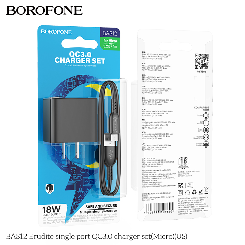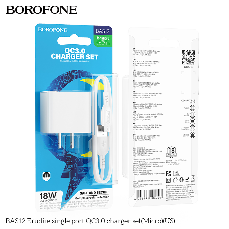 Bộ sạc QC3.0 một cổng BAS12 Erudite (Micro)(US)