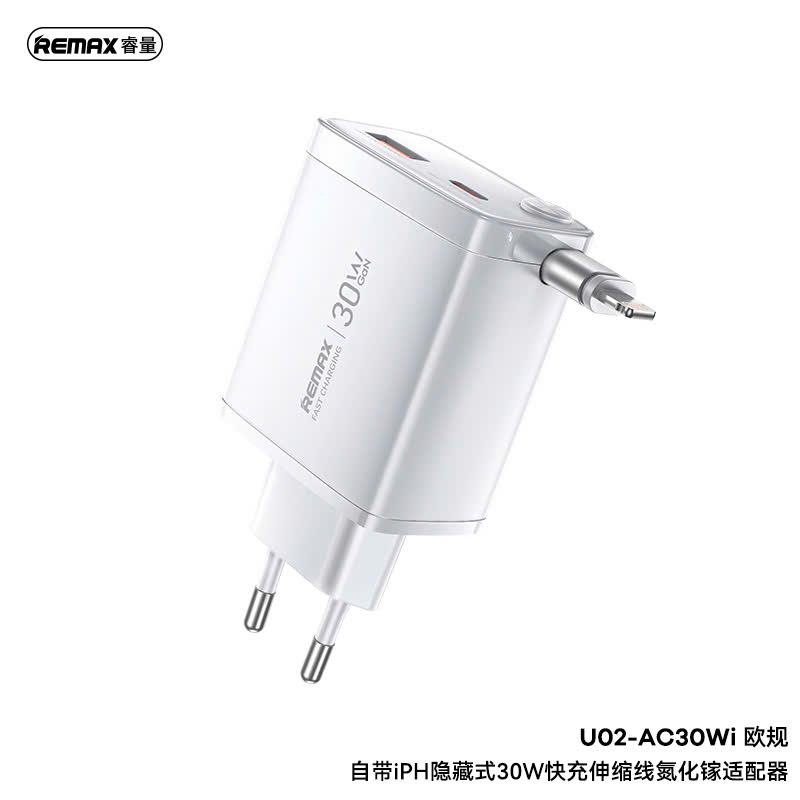 Bộ sạc REMAX U02 hidden 30W GaN Charger IPhone