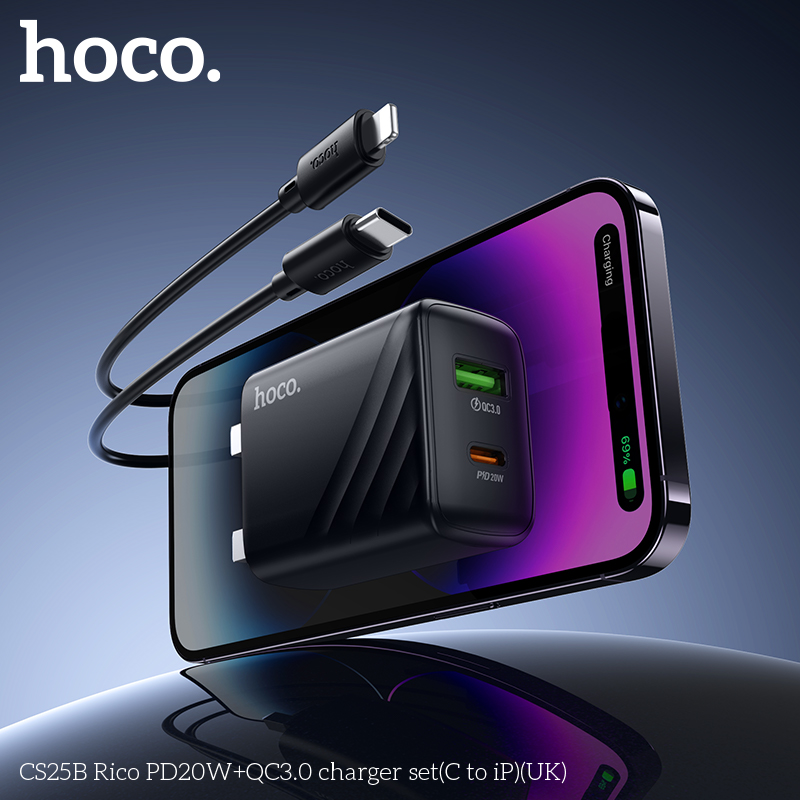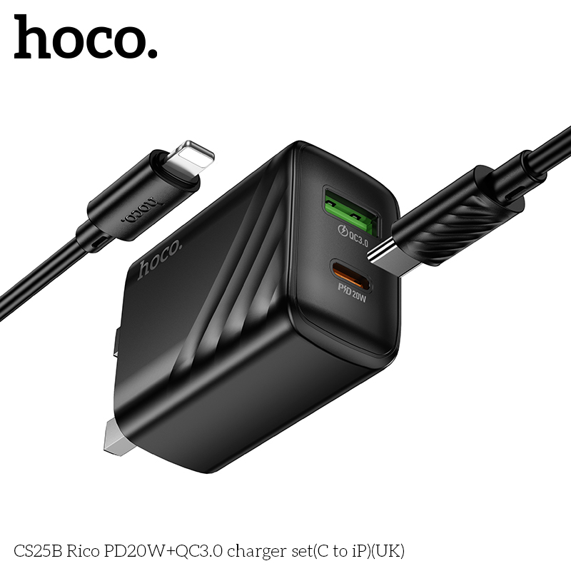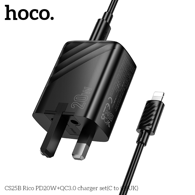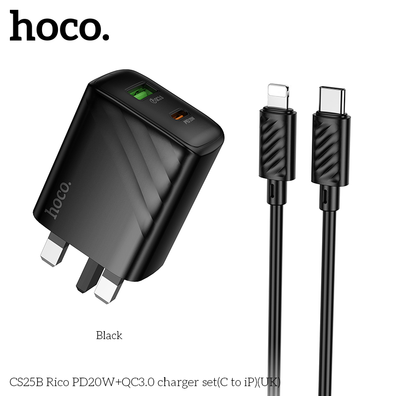 Bộ sạc Rico PD20W+QC3.0 CS25B (C đến iP) (UK)