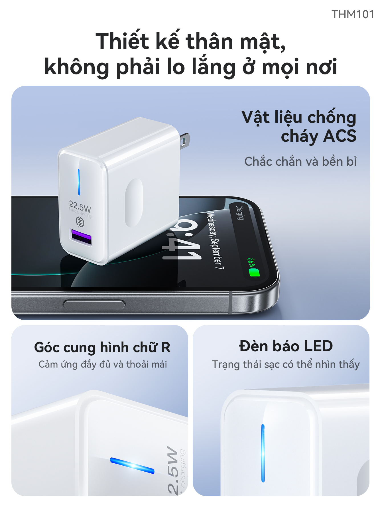 3. Chất liệu ACS chống cháy, bền. Báo đèn LED