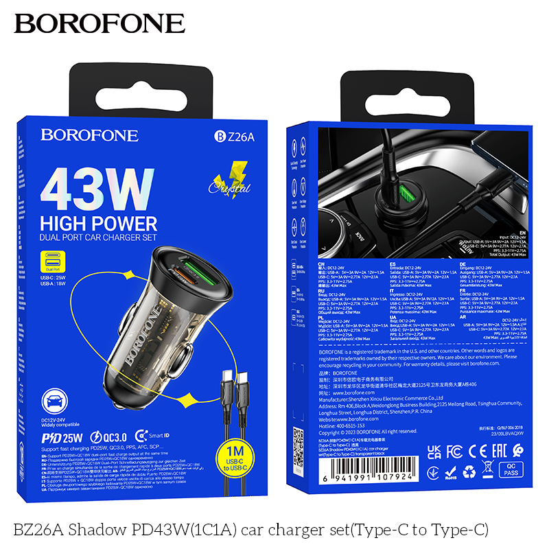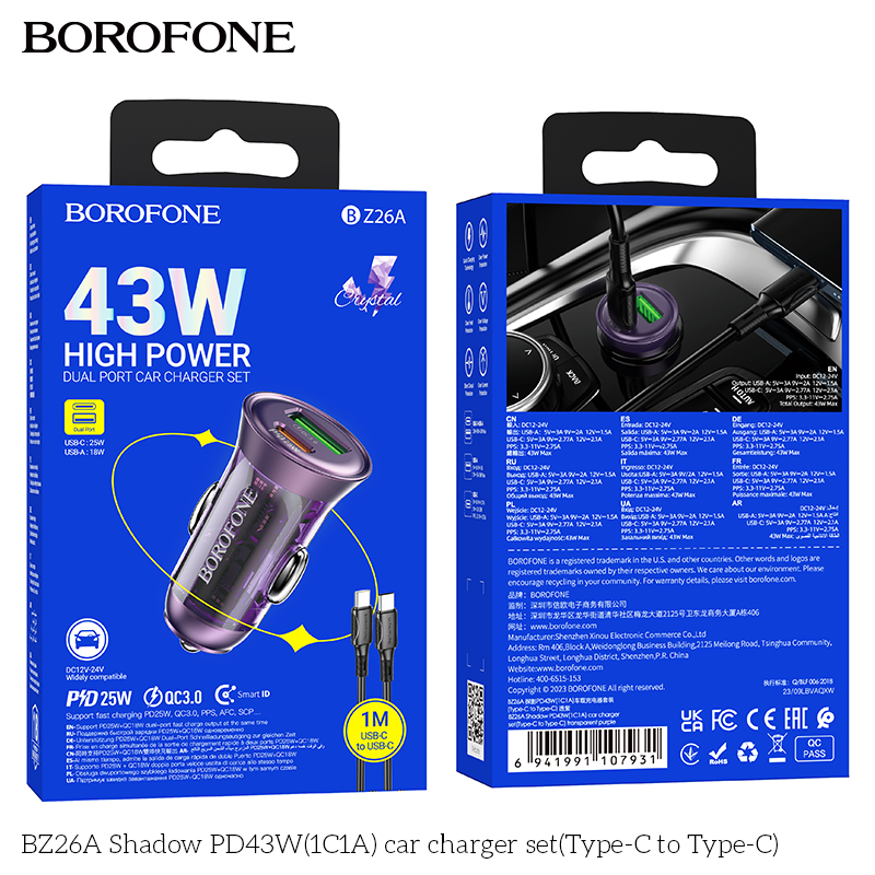 Bộ sạc xe hơi BZ26A Shadow PD43W(1C1A)(C sang iP