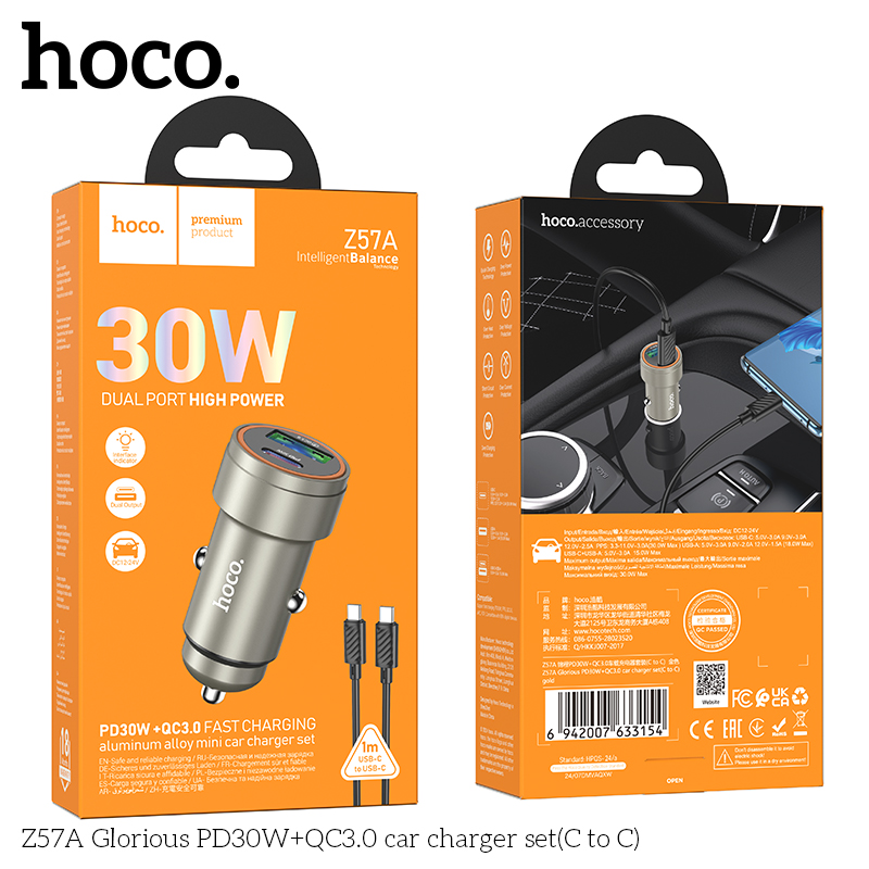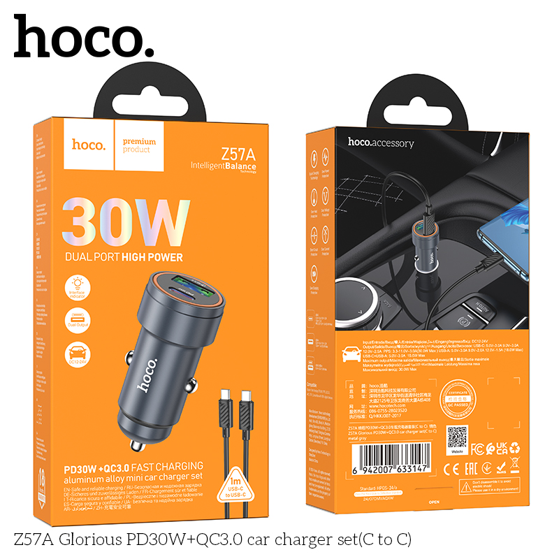 Bộ sạc xe hơi Z57A Glorious PD30W+QC3.0 (C đến C)