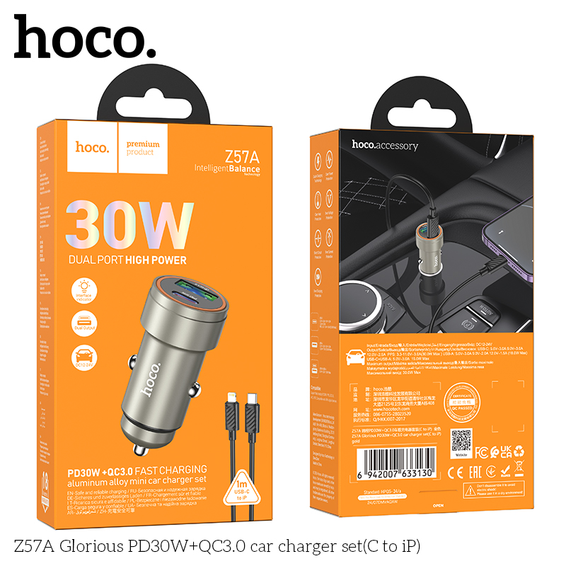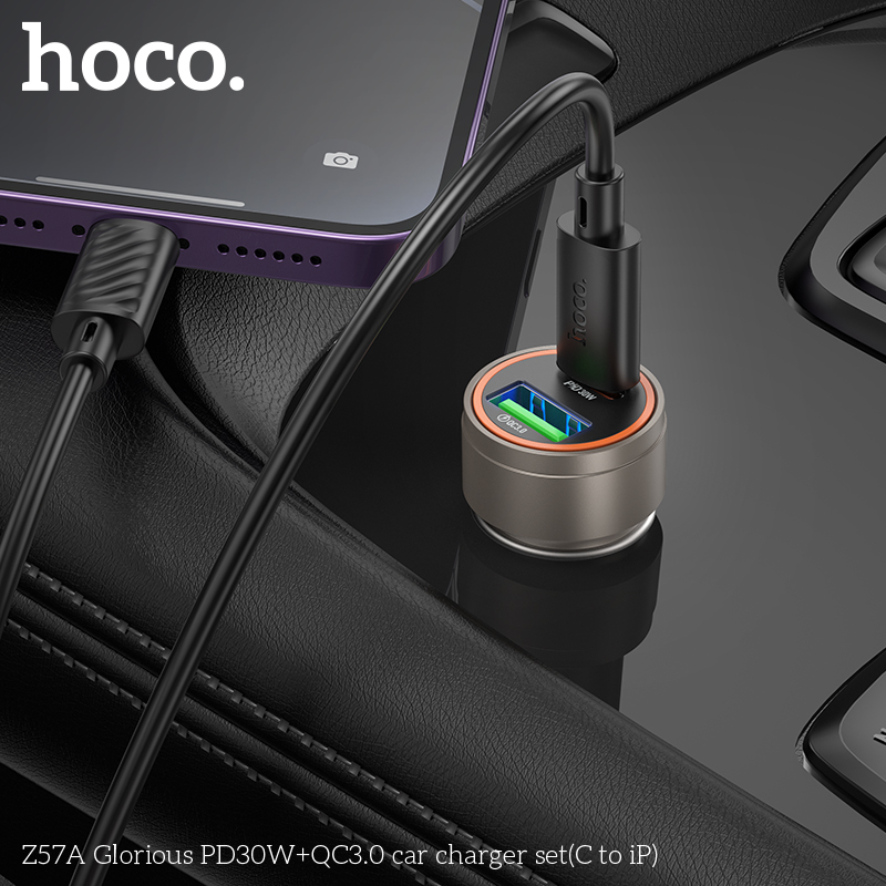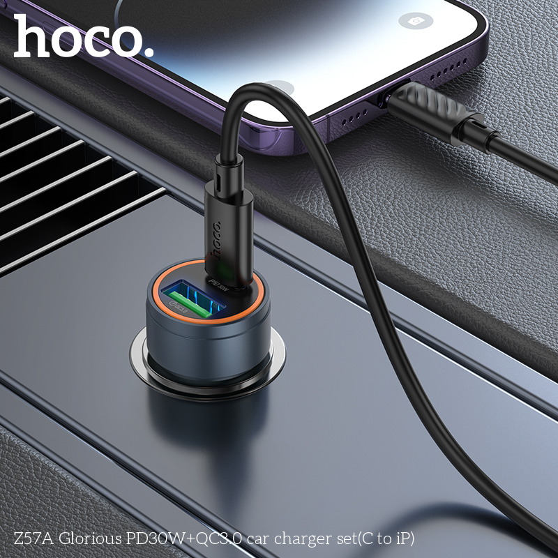 Bộ sạc xe hơi Z57A Glorious PD30W+QC3.0 (C sang iP)