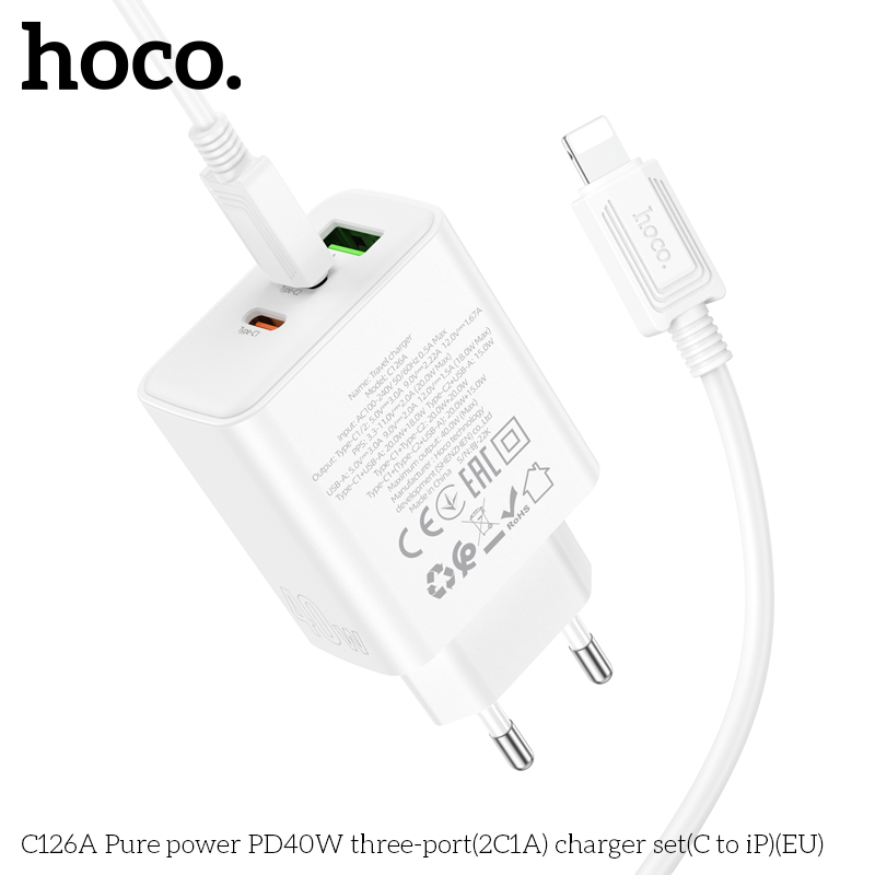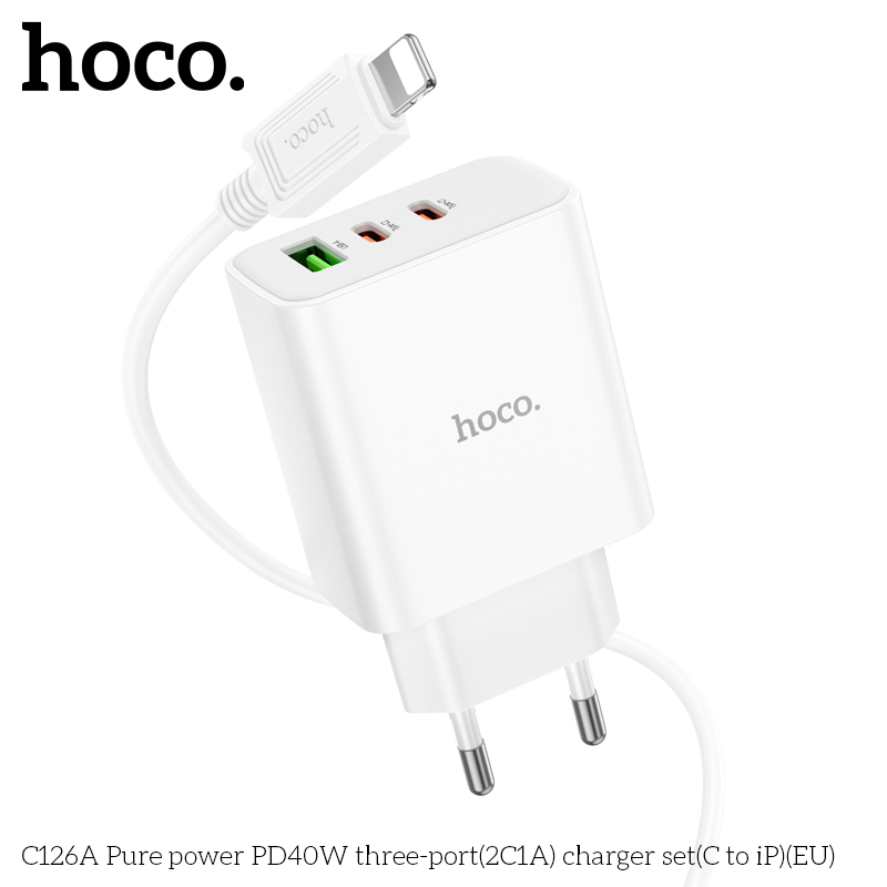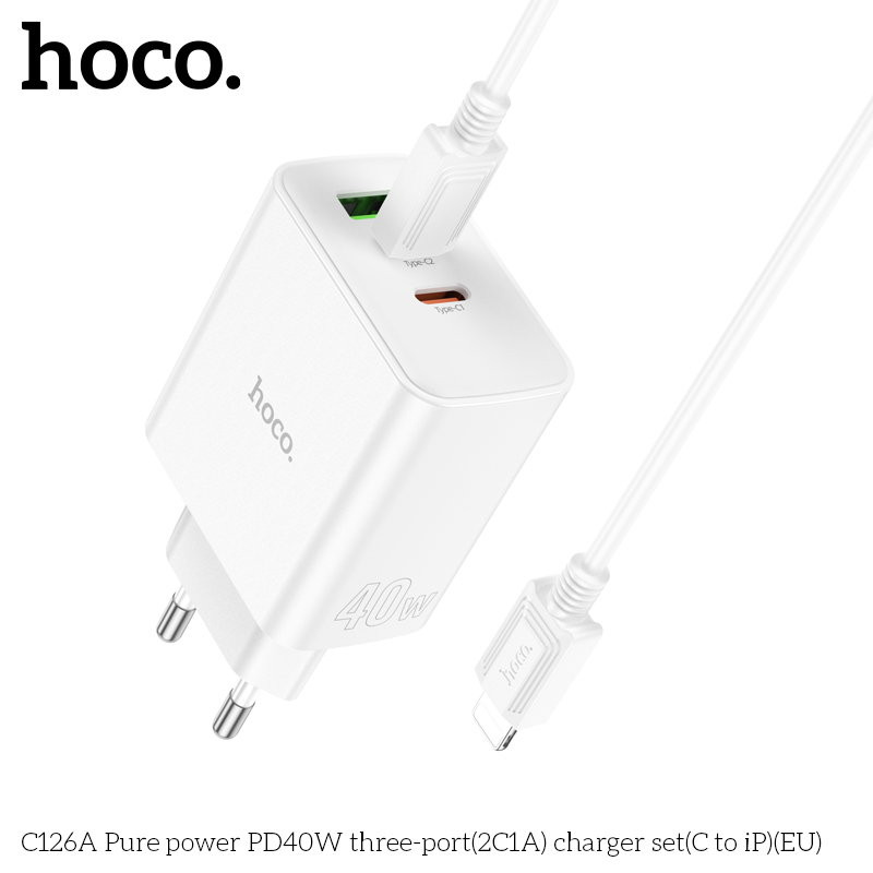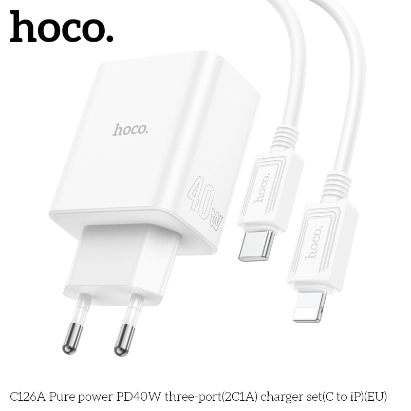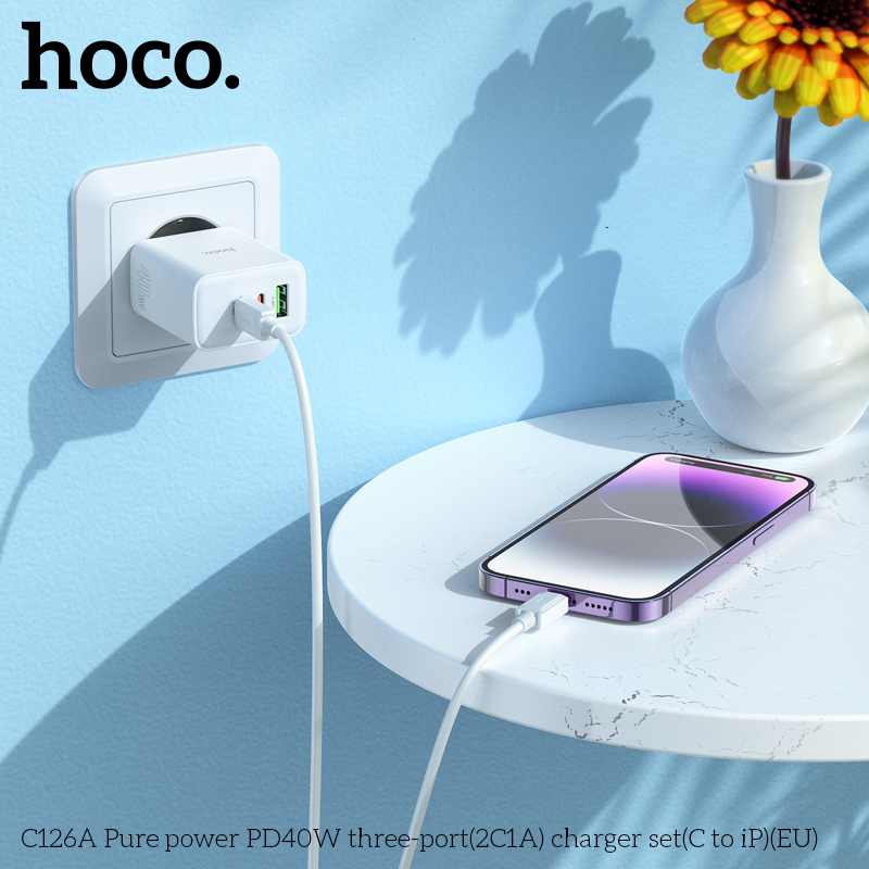 C126A Bộ sạc ba cổng PD40W(2C1A) Pure power (C to iP)(EU)