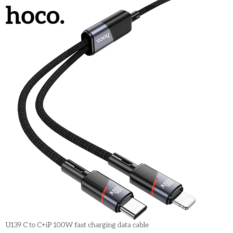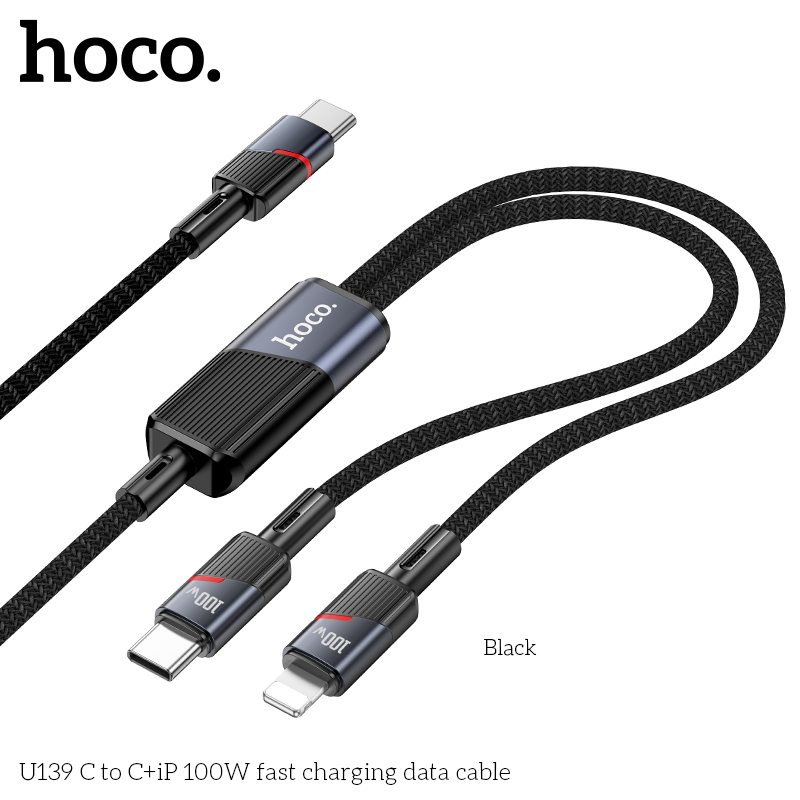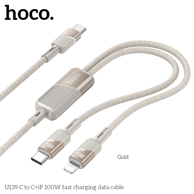 Cáp dữ liệu sạc nhanh 2IN1 U139 Type-C sang Type-C+iP 100W