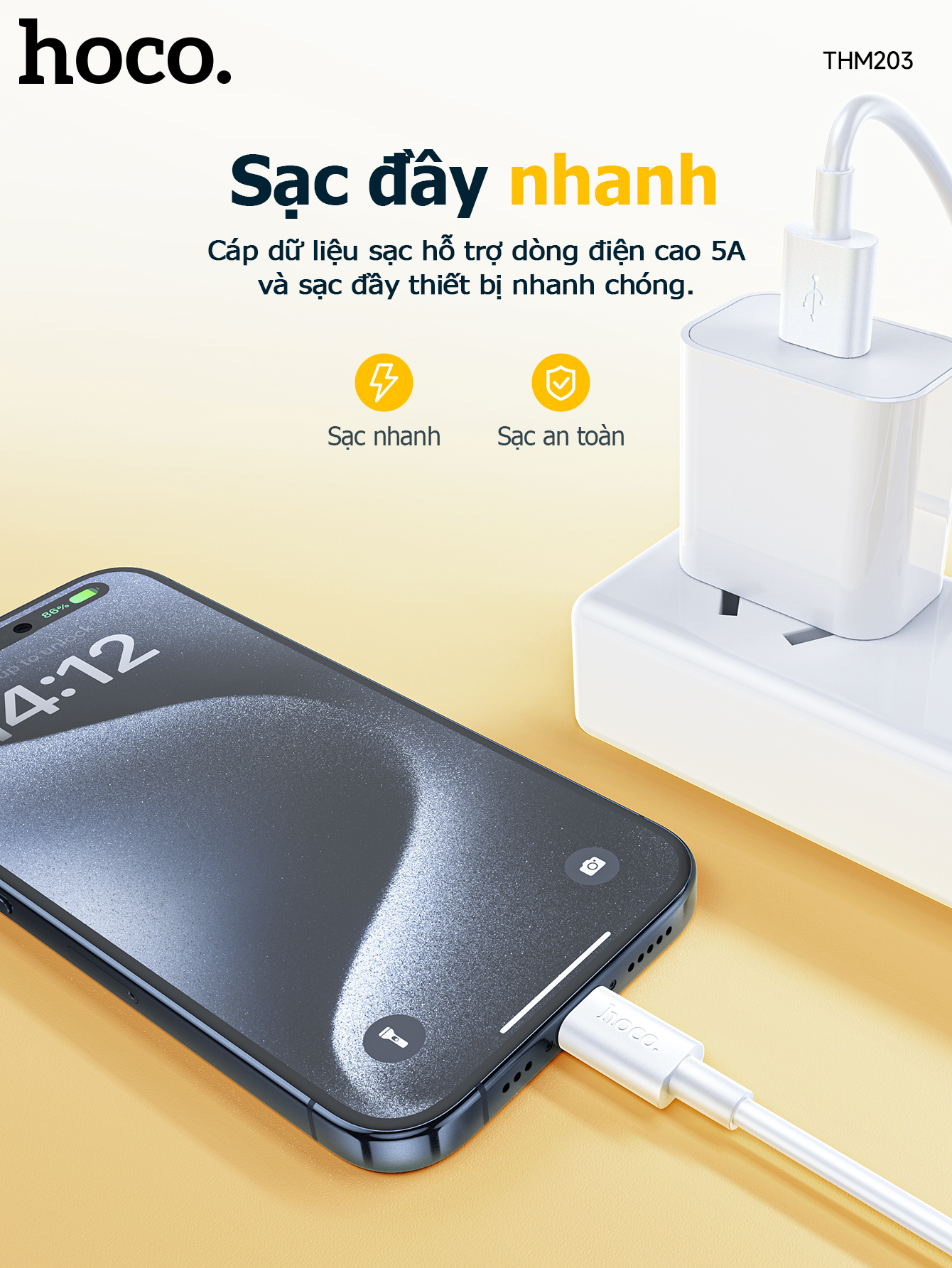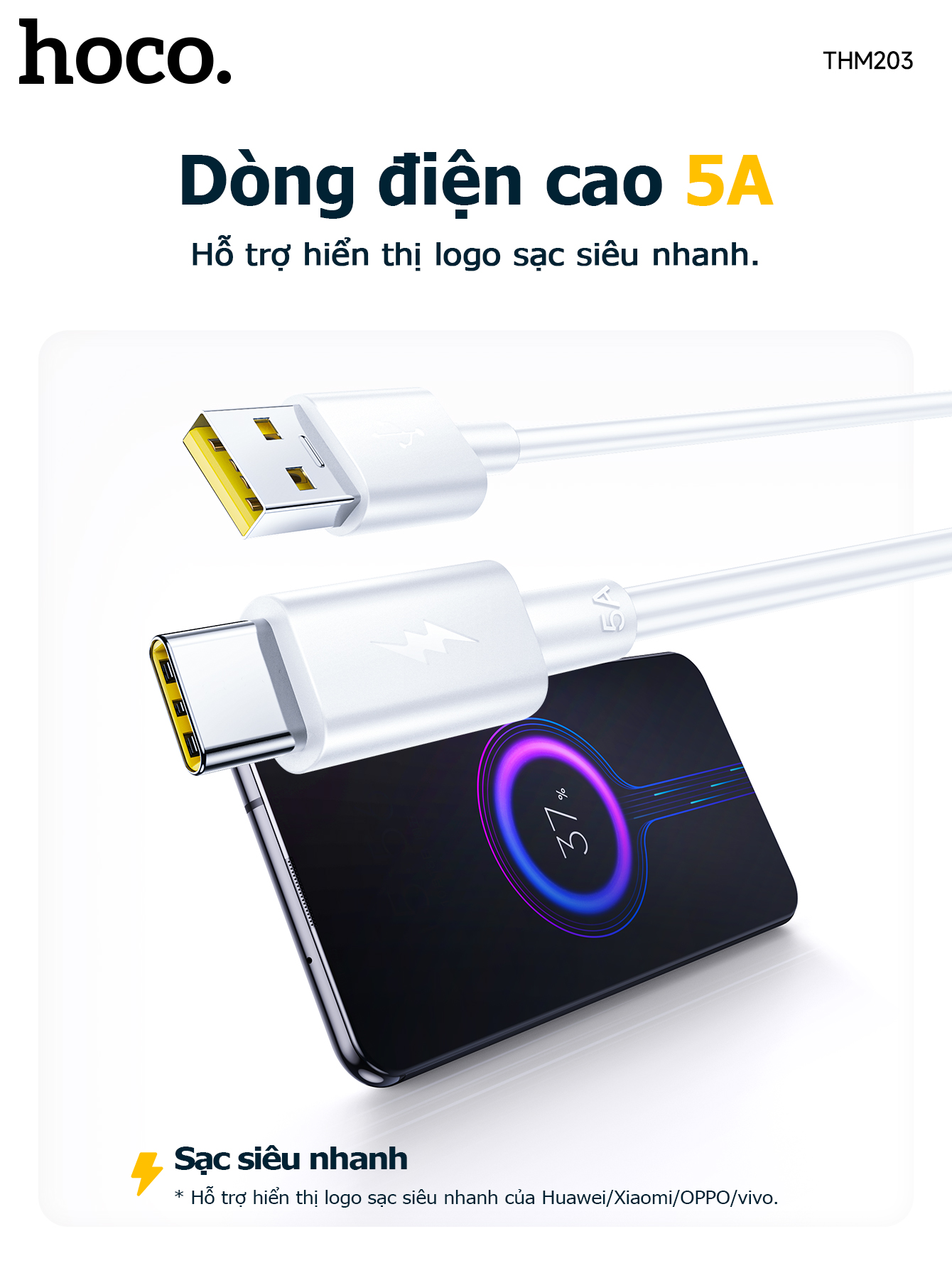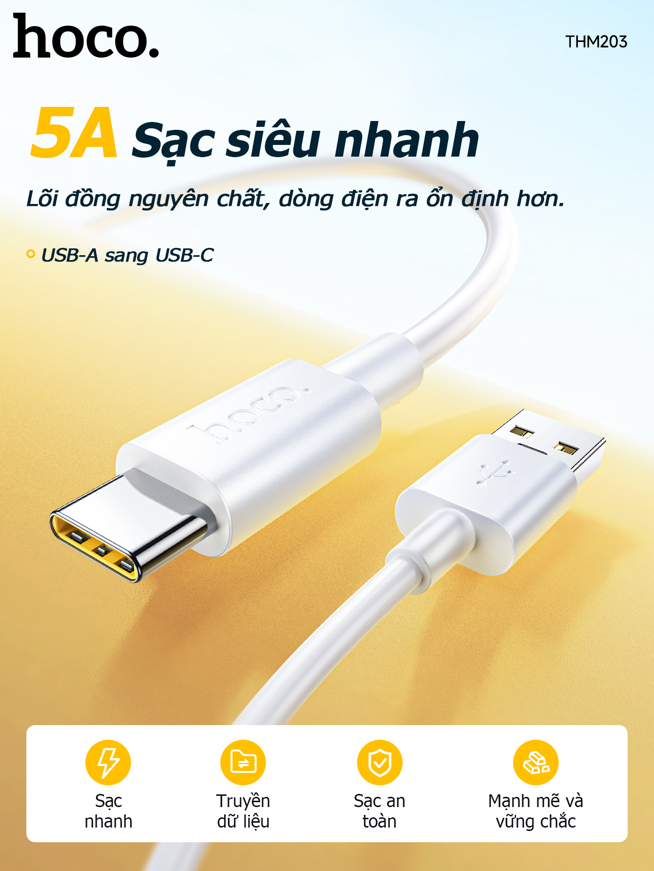Cáp dữ liệu sạc nhanh THM203 Element 5A Type-C (Dài = 1M)