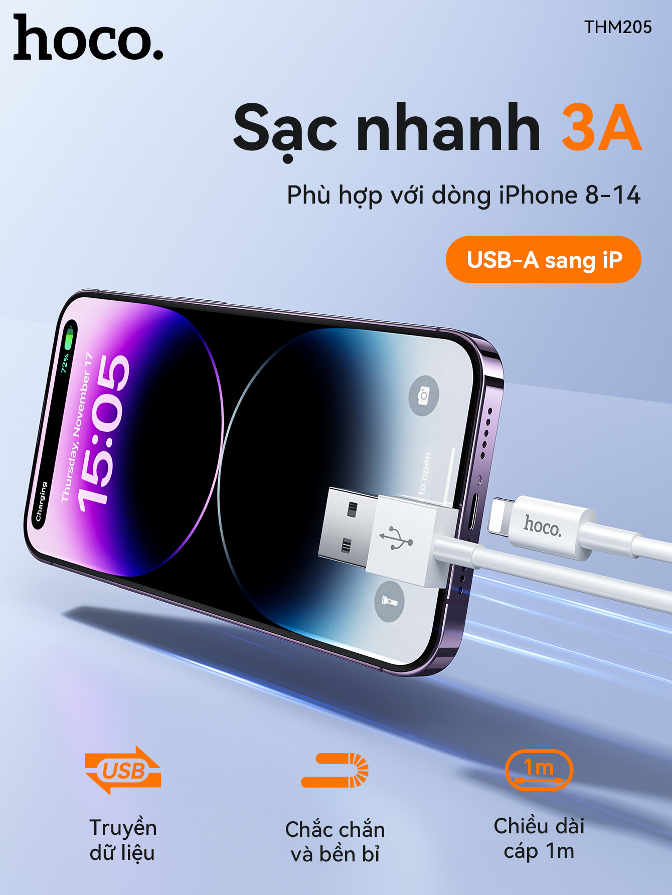 Cáp dữ liệu sạc pha lê THM205 Original Micro (Dài = 1M)
