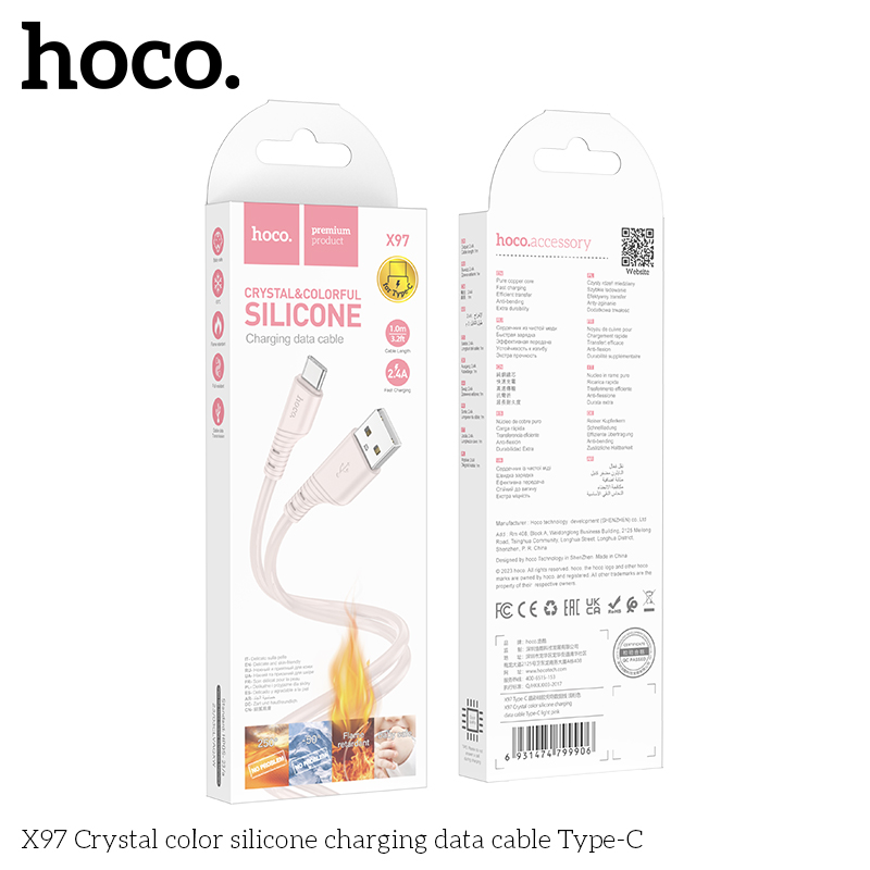 Cáp dữ liệu sạc silicon màu pha lê X97 Type-C