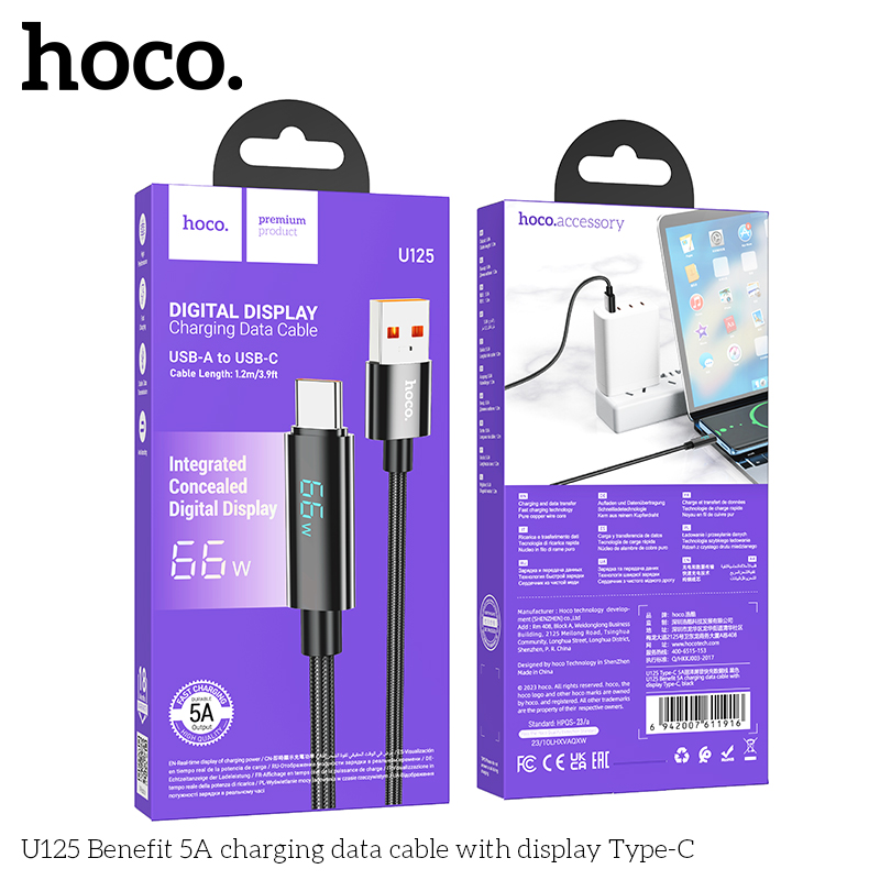 Cáp dữ liệu sạc U125 Benefit có màn hình Type-C