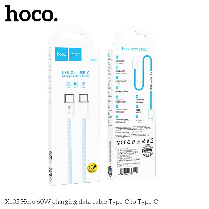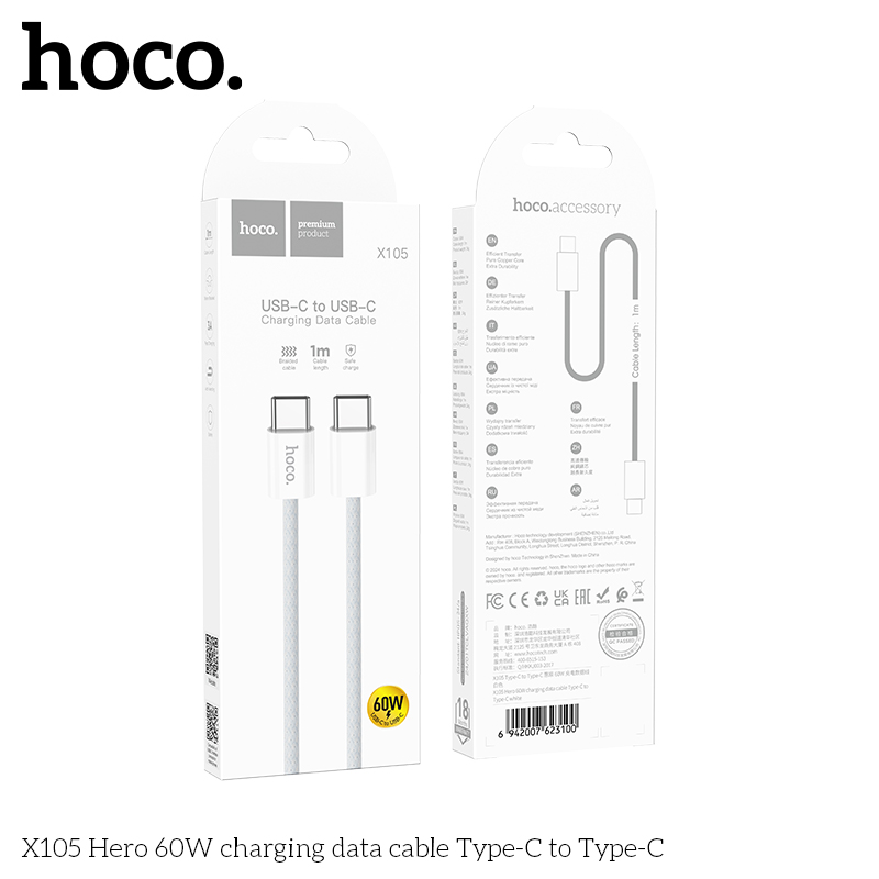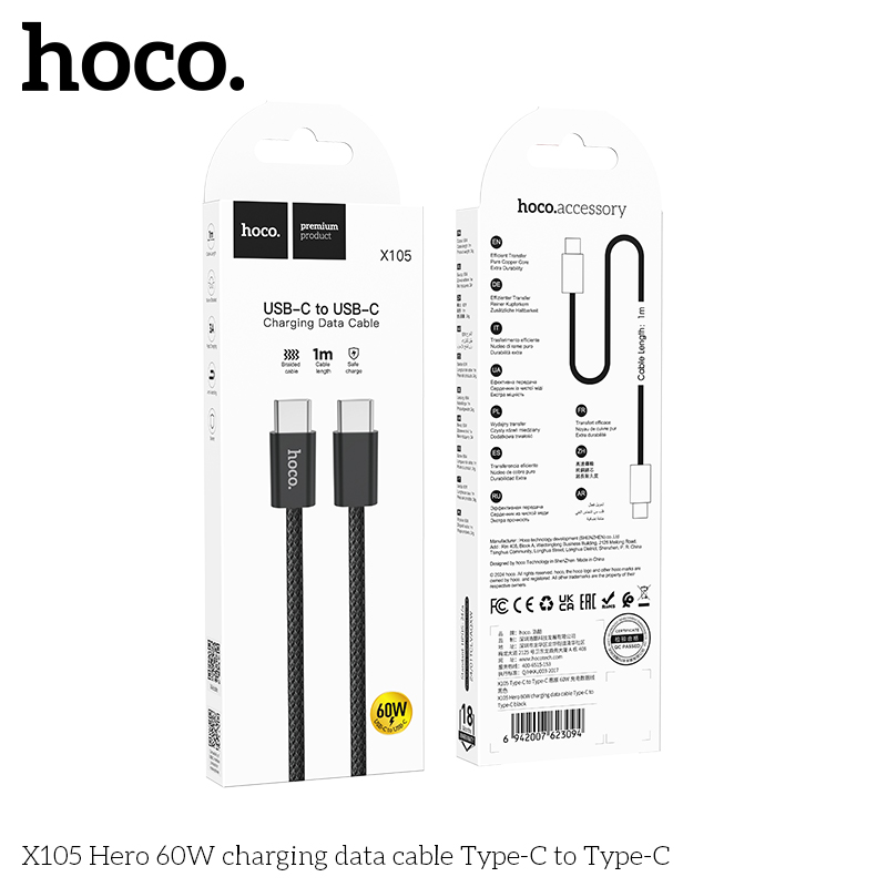 Cáp dữ liệu sạc X105 60W Type-C to Type-C