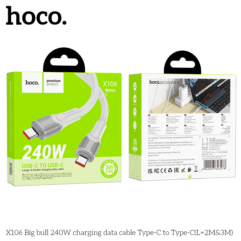 Cáp dữ liệu sạc X106 240W Type-C to Type-C (L=3M)