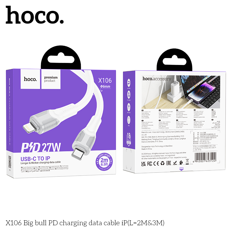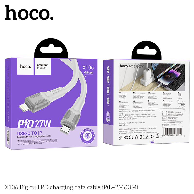 Cáp dữ liệu sạc X106 Type C to iphone (L=2M)