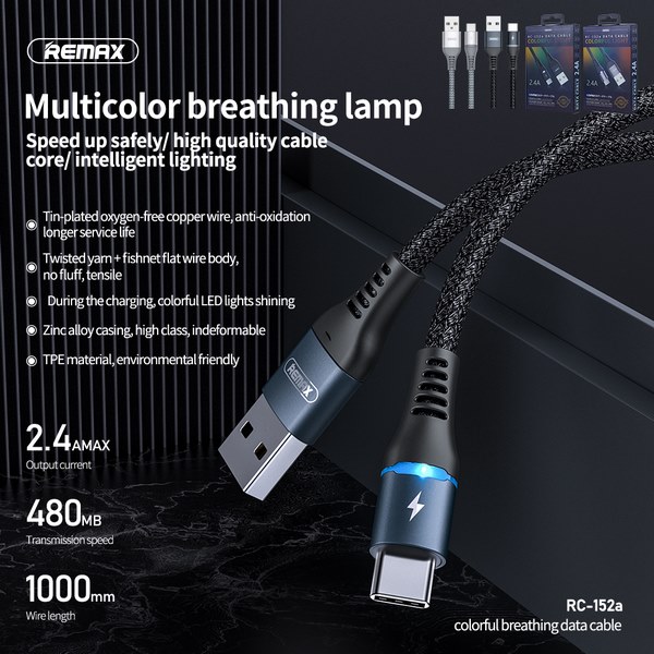 Cáp sạc bọc dù Type C REMAX RC-152a 2.4A