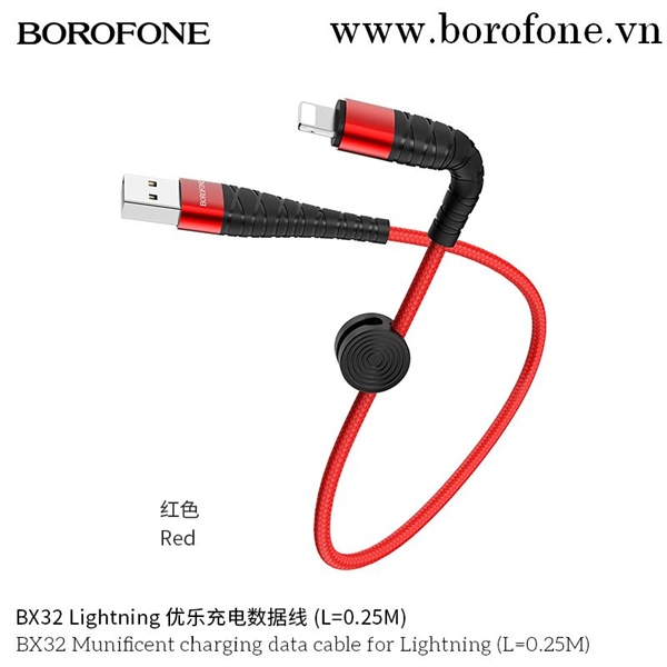 Cáp sạc Brofone BX32 Màu Đỏ IP (L=0.25M)
