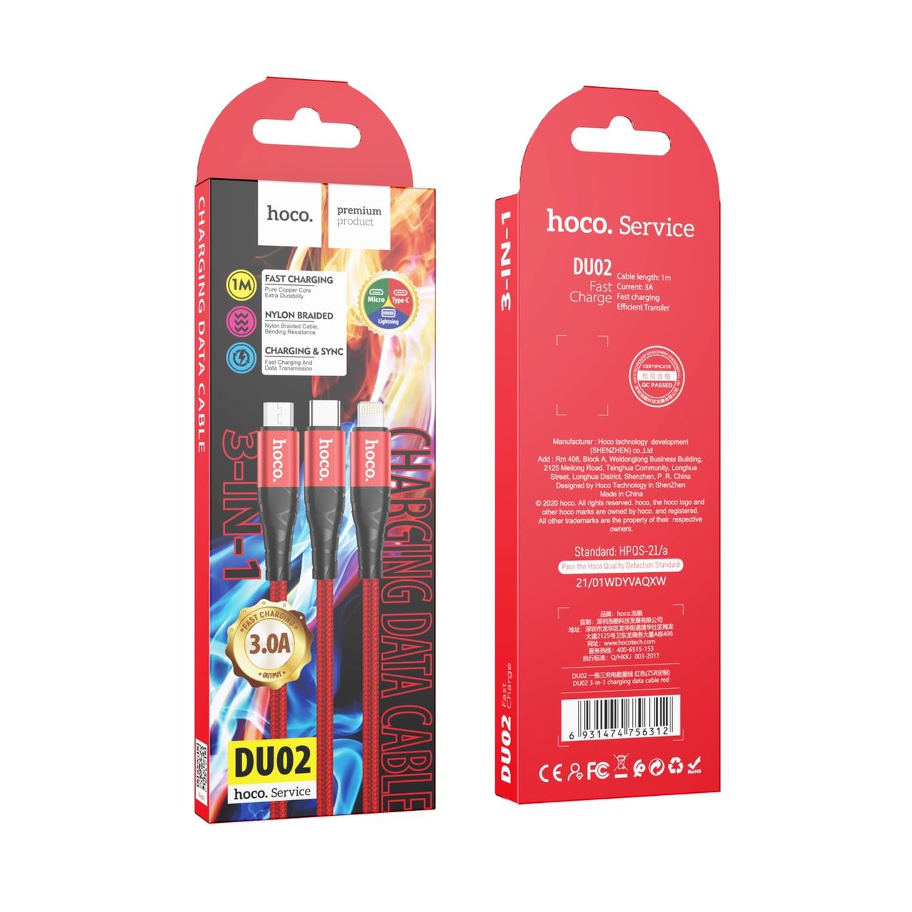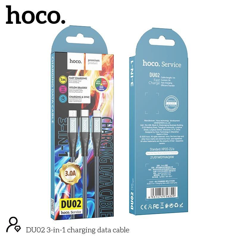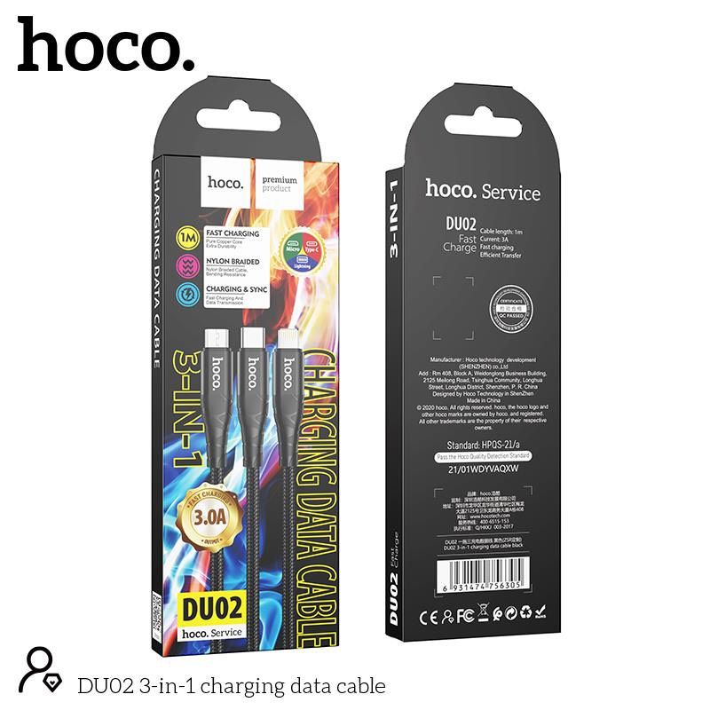 Cáp Sạc Dù 3 đầu Hoco DU02 3in1