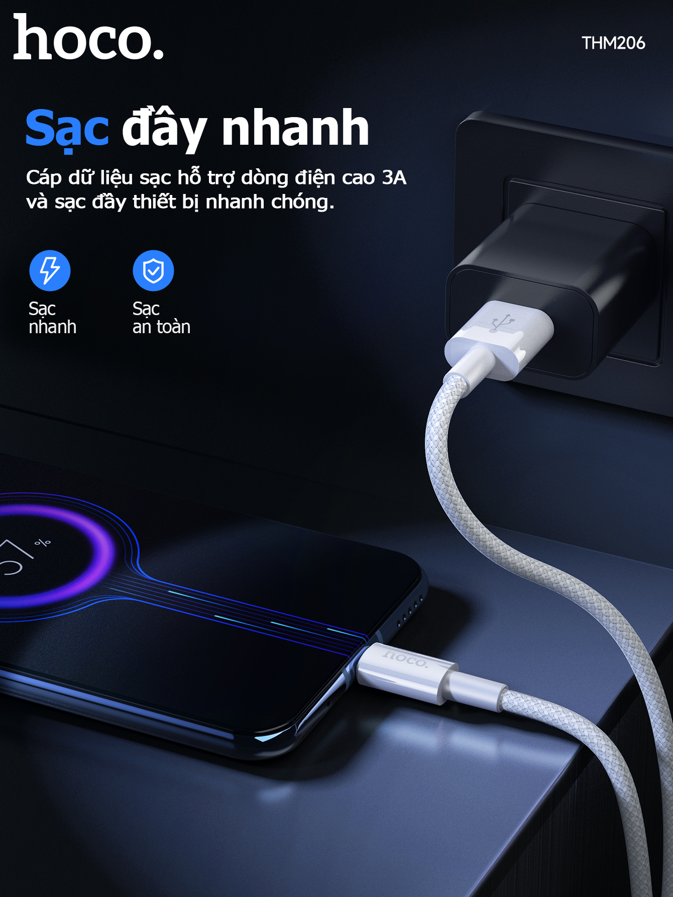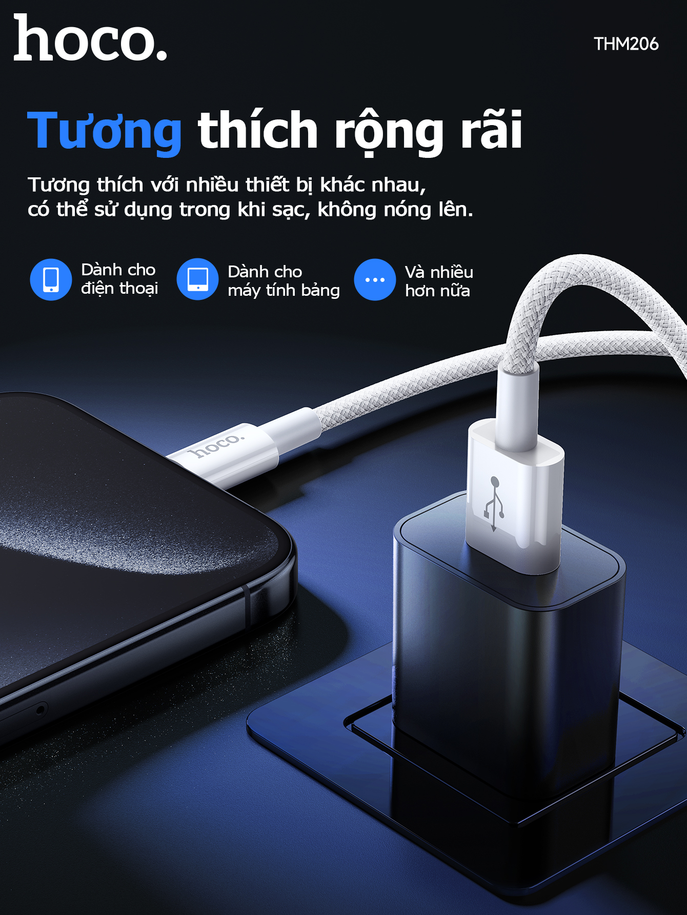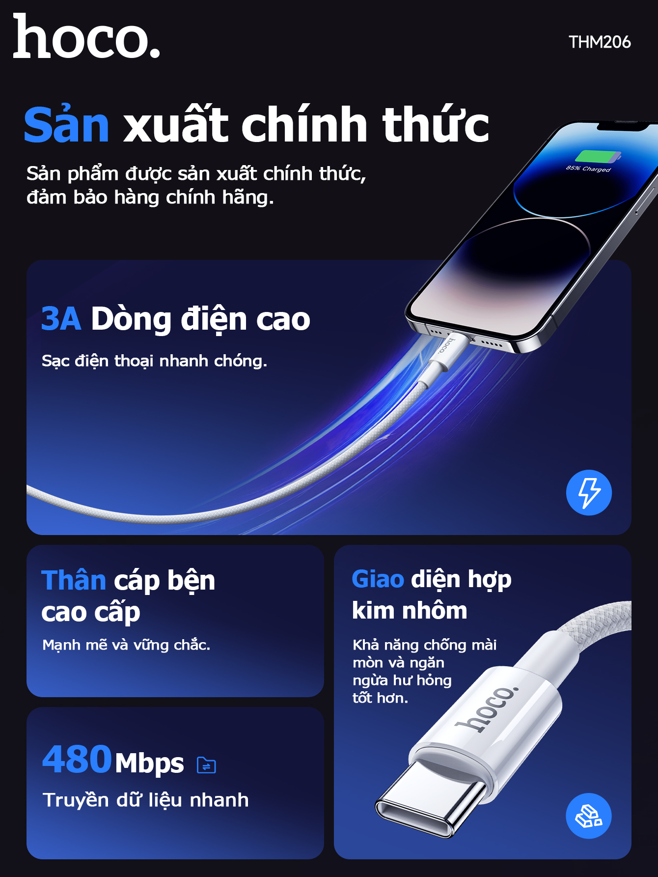 Cáp sạc dữ liệu chính hãng THM206 Type-C (Dài = 1M)