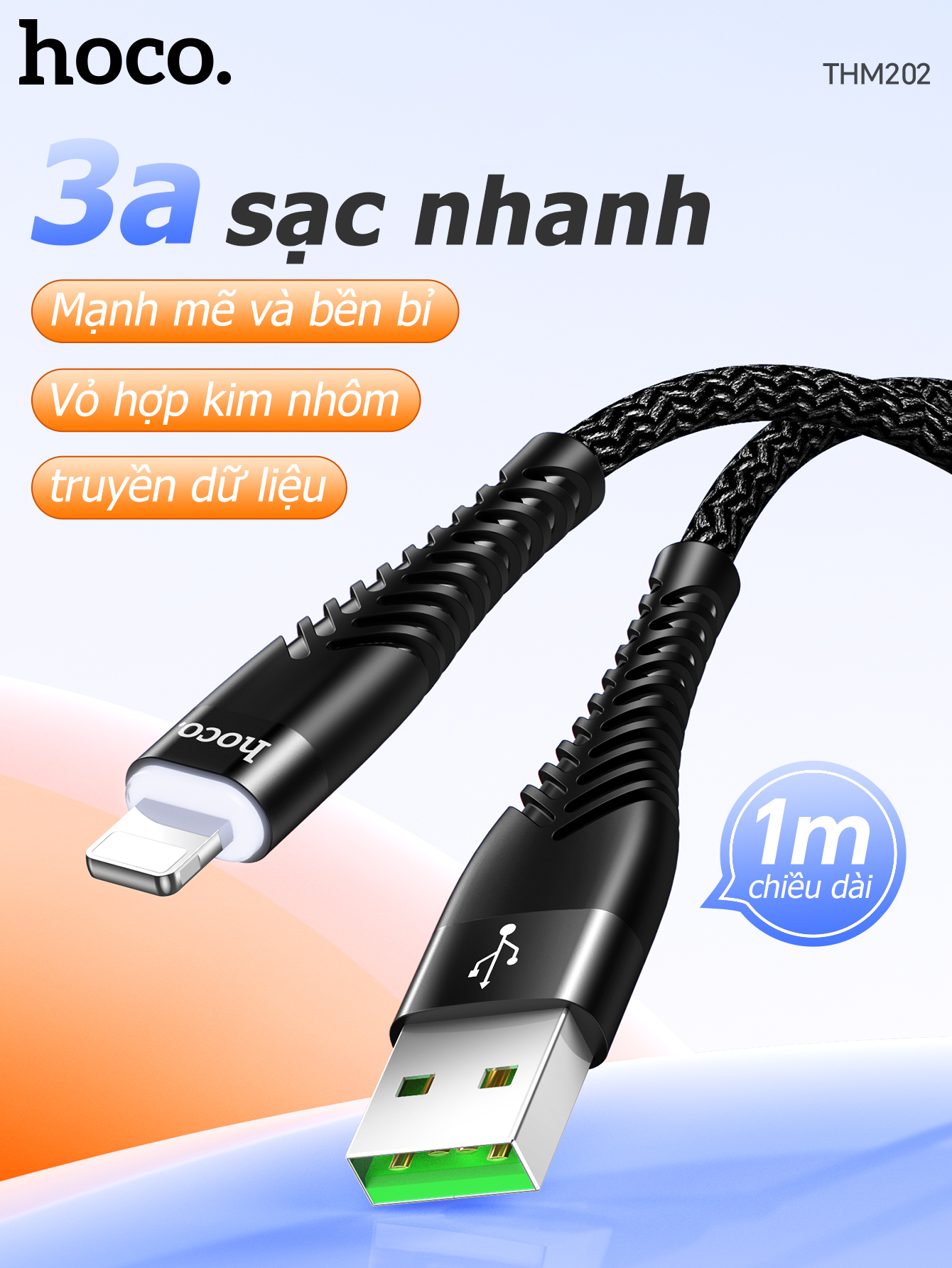 Cáp sạc dữ liệu THM202 SWAN có đèn Type-C (Dài = 1M)